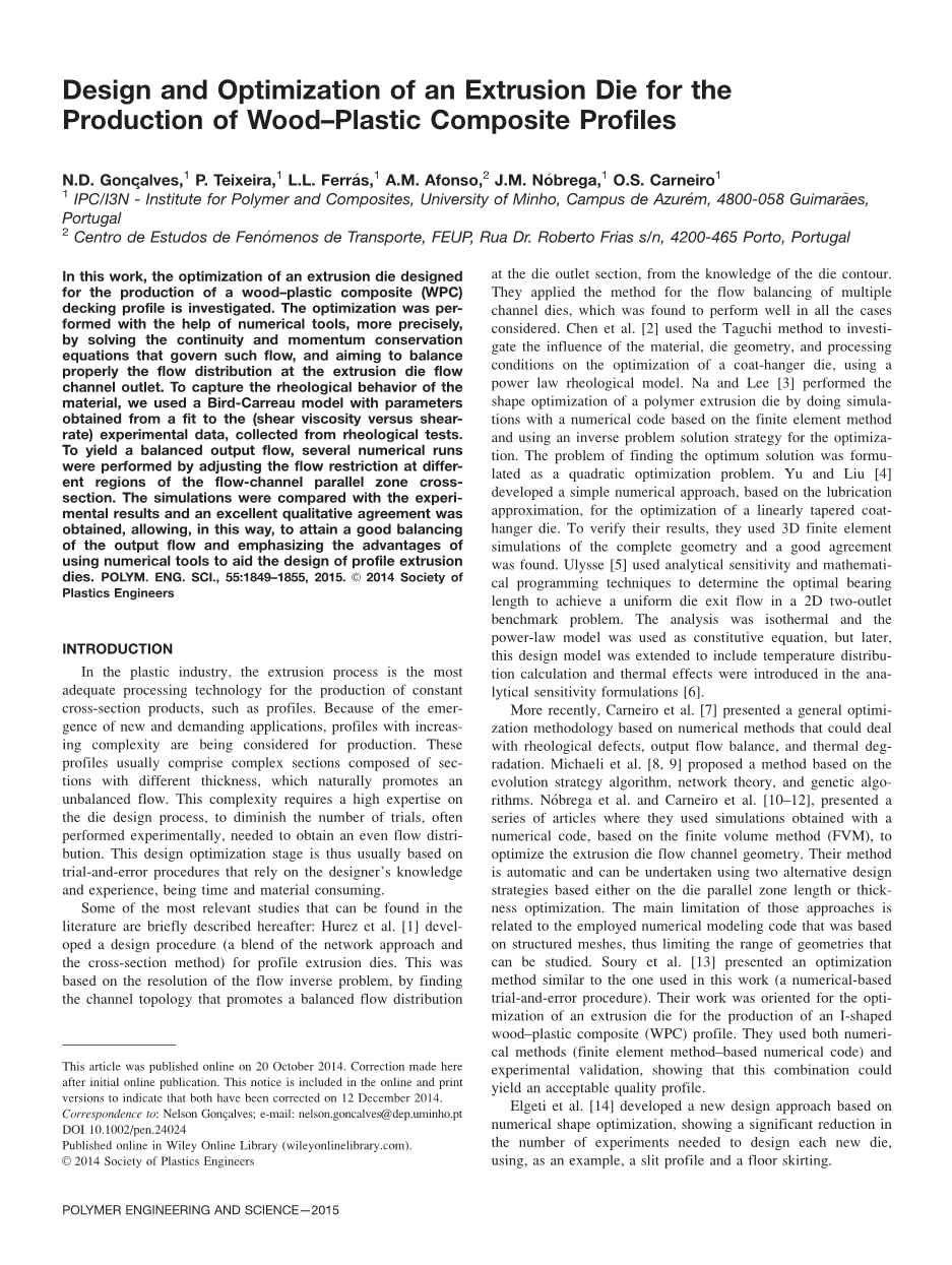 N.D. Gonccedil;alves,1P.Teixeira,1L.L. Ferras,1 A.M. Afonso, 2J.M. Nobrega,1O.S. Carneiro1