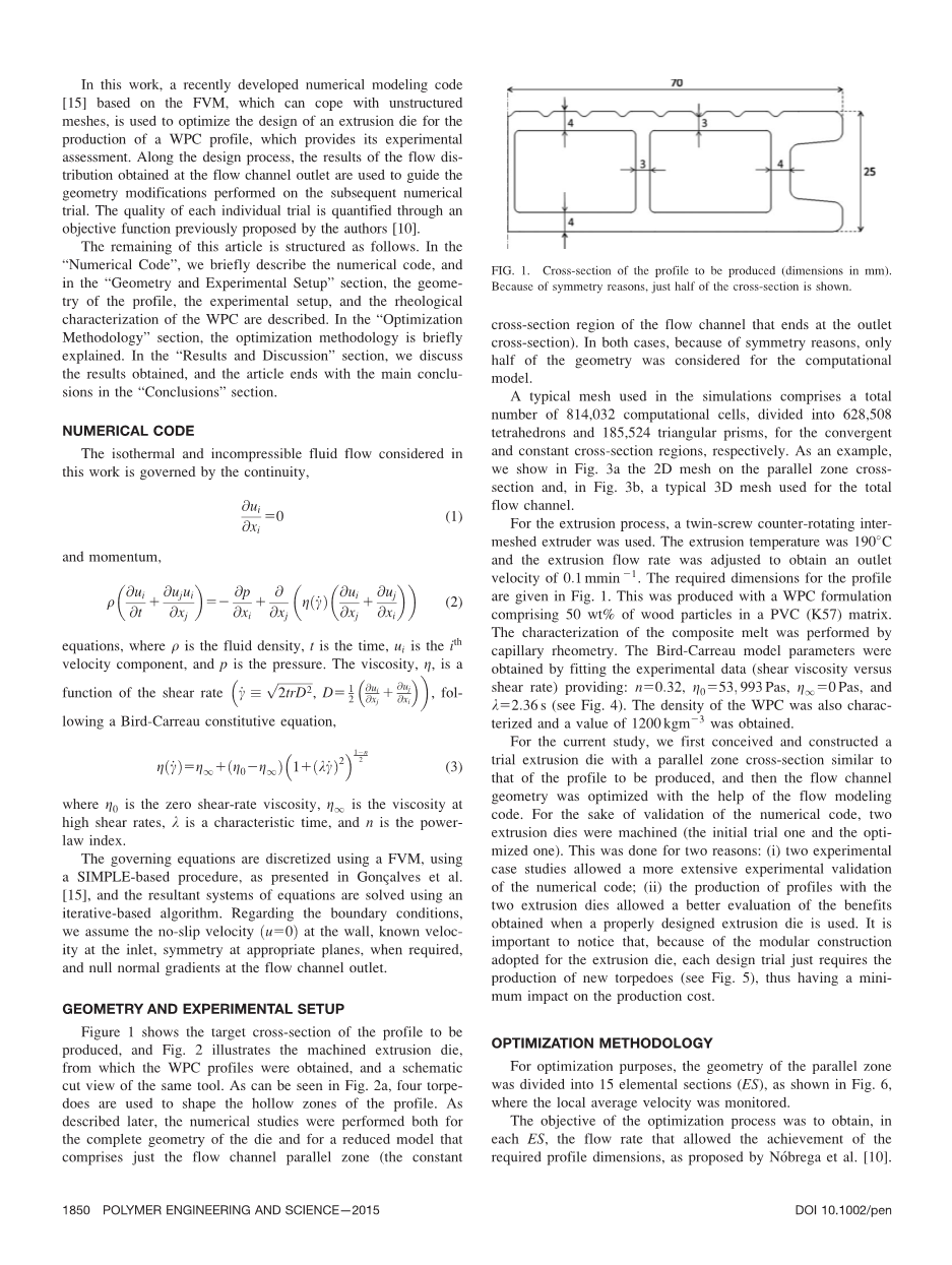 本文的其余部分结构如下。在“数字代码”中,我们简要描述了数字代码,在“几何和实验装置”部分,描述了轮廓的几何结构、实验装置和木塑复合材料的流变特性。在“优化方法”一节中,对优化方法进行了简要说明。在“结果和讨论”部分,我们讨论所获得的结果,文章以“结论”部分的主要结论结束。