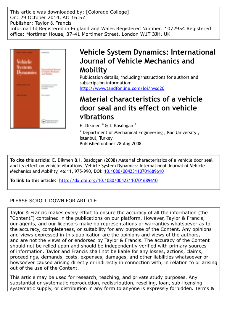 引用本文: E. Dikmen&I. Basdogan(2008)车门密封条的材料特性及其对车辆振动的影响,《车辆系统动力学》:《国际车辆力学与机动性杂志》,46:11,975-990,DOI :10.1080 / 00423110701689610