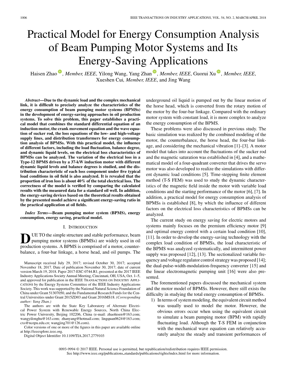 Keywords:Beam pumping motor system (BPMS), energy consumption, energy saving, practical model.