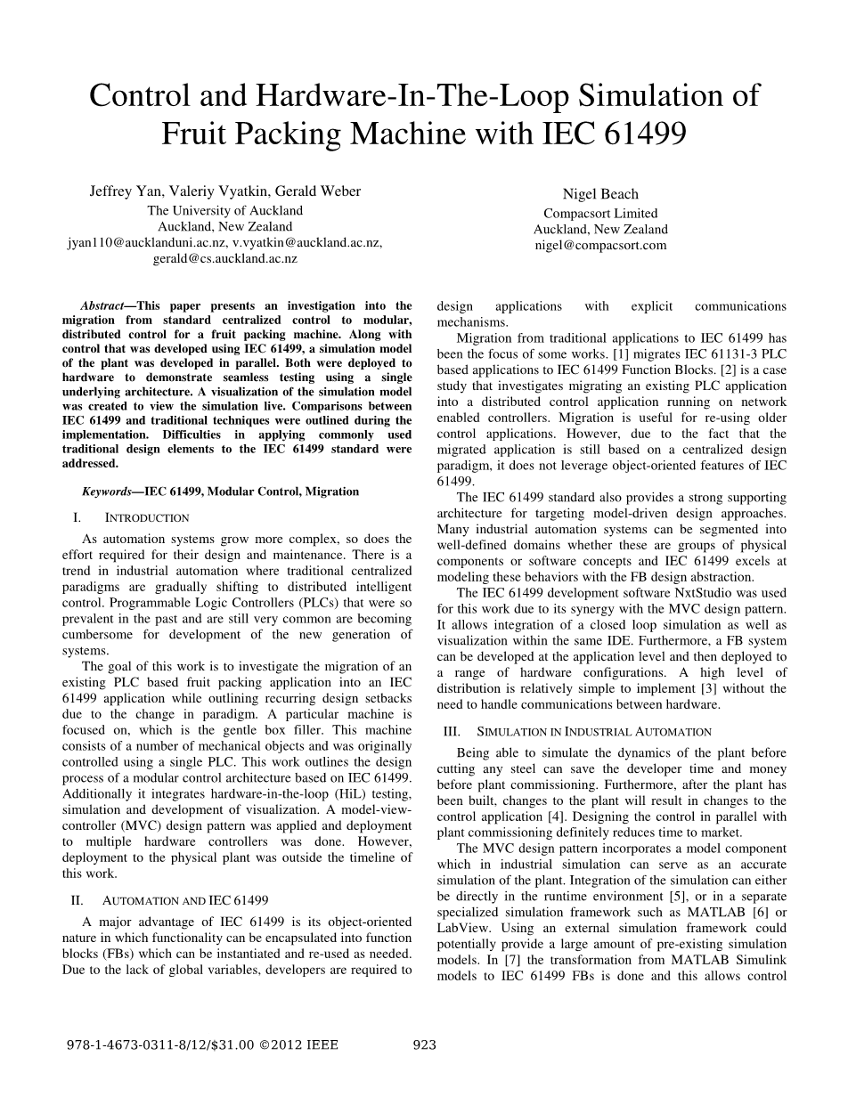 Jeffrey Yan, Valeriy Vyatkin, Gerald Weber