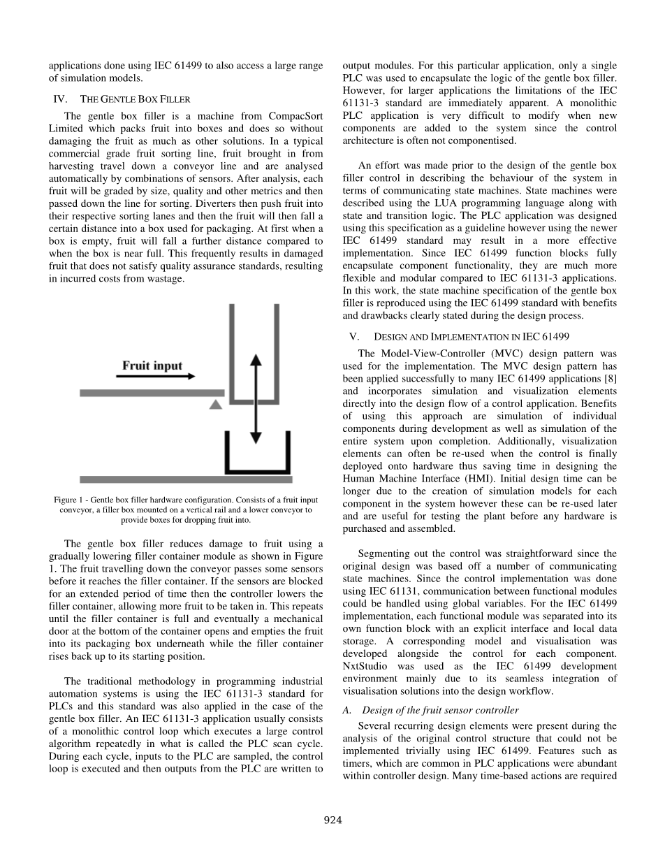 Nxt工作室为IEC 61499开发的软件被用于这项工作归因于它和MVC设计模式的协同效应。它允许集成的闭环仿真以及在相同的IDE上的可视化。此外,一个功能模块系统可以先设计应用程序,然后再开发一系列的硬件。高水平的分布是相对容易实现的[3]没有需要处理的硬件之间的通信。