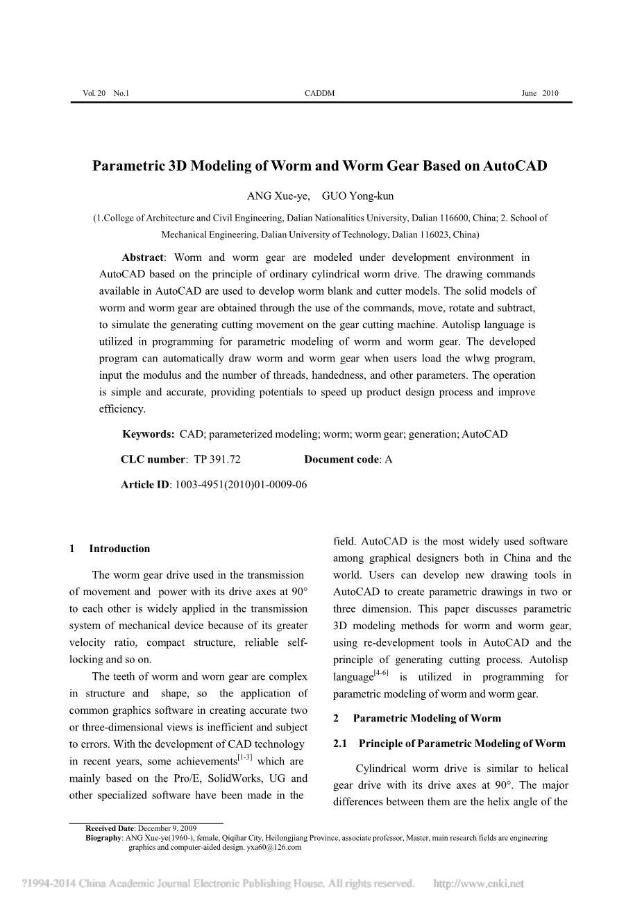 而蜗轮和蜗杆的磨损在结构和形状上是十分复杂的,所以应用程序创建的常见的图形软件都是二位和三维的 。 CAD技术的发展在近些年取得了一些不错成就,其主要基于Pro / E、UG和SolidWorks和其他专业软件。其中autocad在图形设计师中是应用最广泛的设计软件, 用户可以通过利用AutoCAD创建参数开发新的绘图工具来获得二维或三维的图纸。因此这个论述可以实现三维建模方法基于蜗杆蜗轮的参数化设计,通过使用和开发AutoCAD和Autolisp等语言,可以实现参数化三维建模。