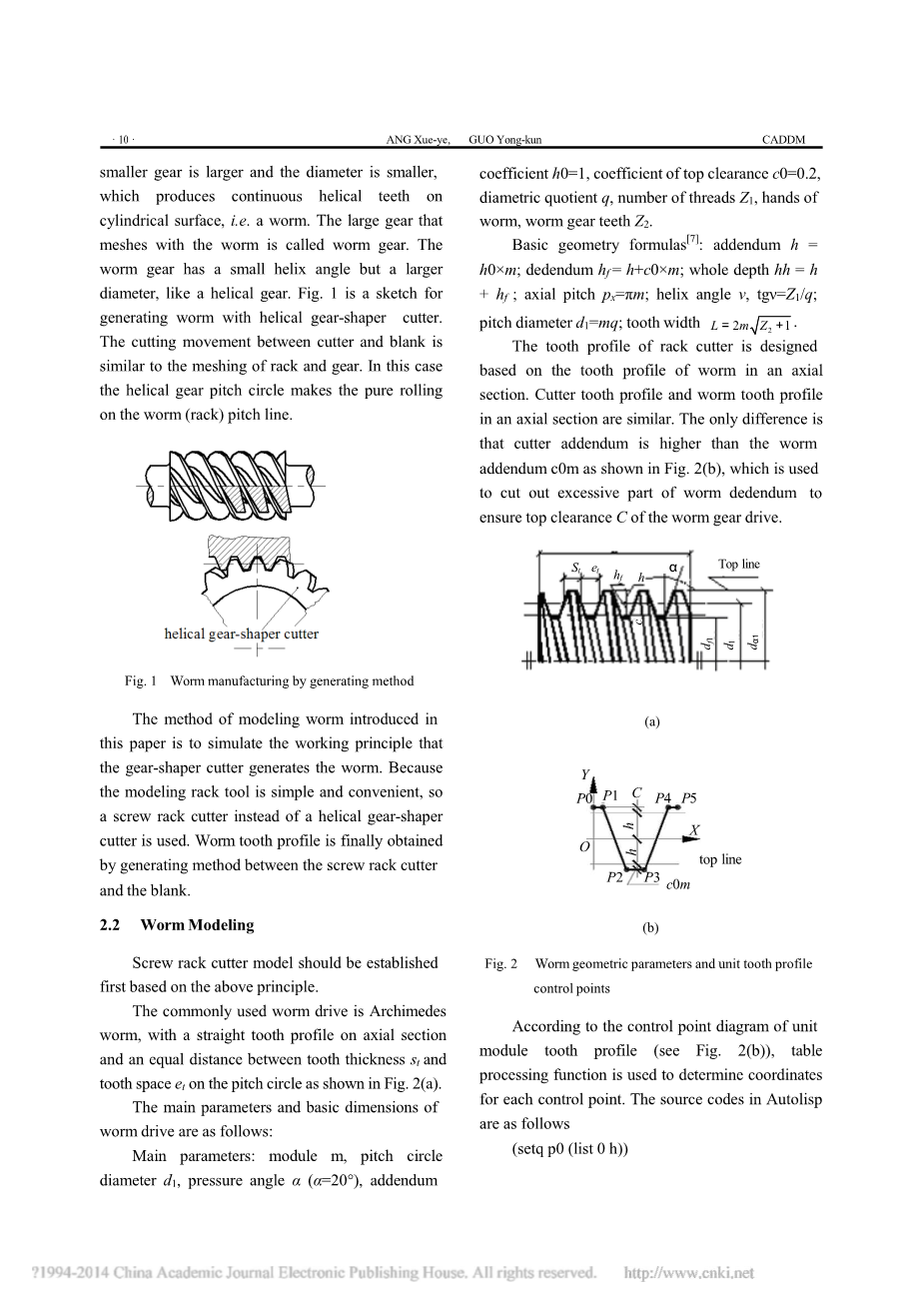 圆柱蜗杆传动类似于螺旋齿轮传动,两者之间的轴线夹角是90°,他们之间的主要差异是螺旋角,蜗轮的螺旋角愈大,蜗杆直径越小。在圆柱表面上加工出连续螺旋形的齿就是成为了蜗杆,蜗杆的螺旋线与轴线的夹角叫做蜗轮的螺旋角,与该蜗杆啮合的大齿轮称为蜗轮。蜗杆具有小螺旋角,但具有较大的直径,像一个螺旋齿轮。图1描述了如何用插齿刀加工生成蜗杆与斜齿。