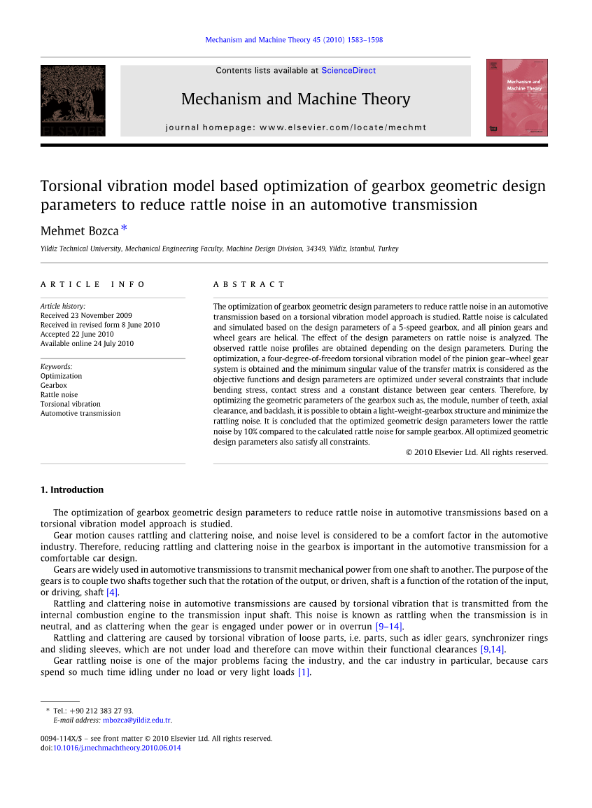 1. 绪论基于优化扭转振动模型的齿轮箱几何设计参数以降低汽车变速器的噪声