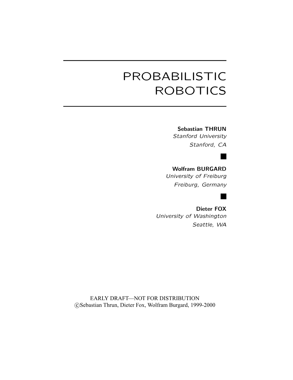 这本书是由专门从事机器人或应用统计学的研究人员、研究生或高级本科生编写。我们曾试图以一种需要最少的背景知识的方式呈现材料,概率论的基本知识肯定有助于理解材料。在第一次阅读时很容易忽略各种数学推导,但是我们强烈建议花时间去研究数学推导,因为深入的数学推导会对机器人学概率方法的工作原理有更深刻的见解。