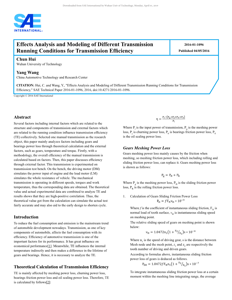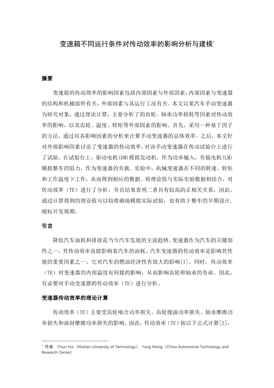 前置前驱车型传动系统阻力影响及效率提升外文翻译资料