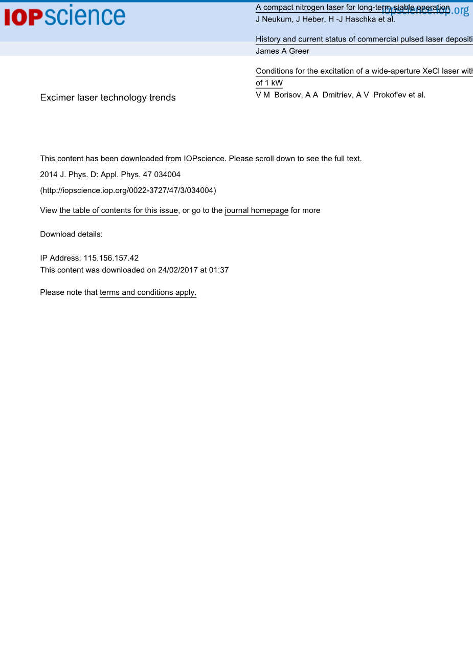 在下面的章节中,此论文从科学和工业环境两方面考虑,讨论了与PLD相关的准分子激光器的技术和输出能量的特性。