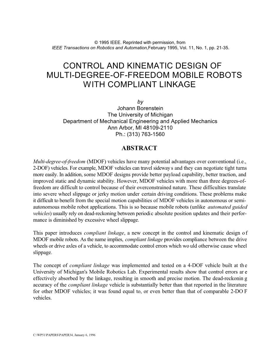 作者:Johann Borenstein密歇根大学机械工程与应用力学系