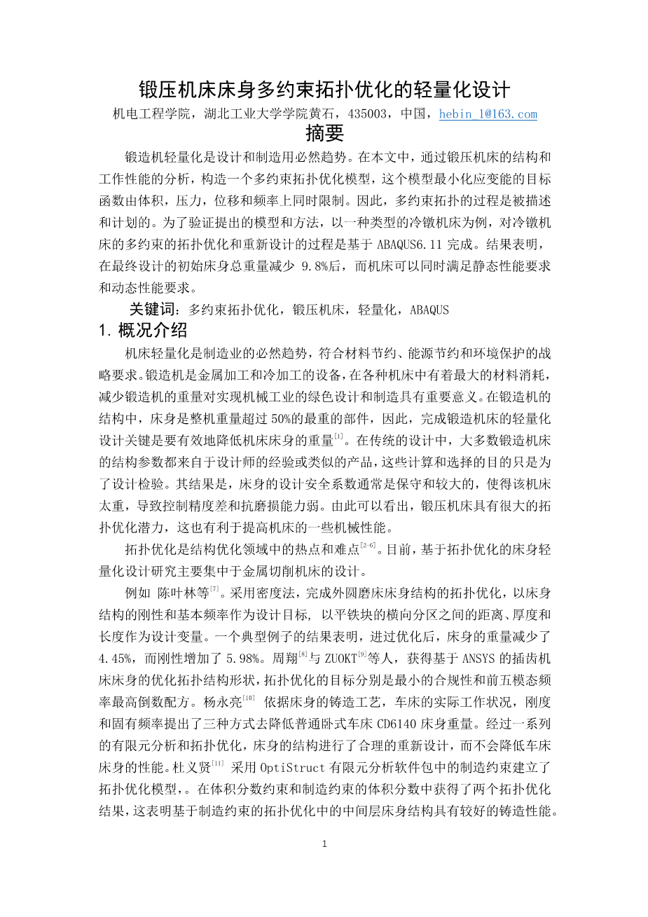 锻压机床床身多约束拓扑优化的轻量化设计外文翻译资料 2023-02-20 19:04:44 英语原文共 10 页,剩余内容已隐藏,支付完成后下载完整资料 英语原文共 12 页,剩余内容已隐藏,支付完成后下载完整资料 资料编号:[147587],资料为PDF文档或Word文档,PDF文档可免费转换为Word 原文和译文剩余内容已隐藏,您需要先支付 30元 才能查看原文和译文全部内容!立即支付 发小红书推广免费获取该资料资格。点击链接进入获取推广文案即可: Ai一键组稿 | 降AI率 | 降重复率 | 论文一键排版 PREVIOUS NEXT 您可能感兴趣的文章 流化床包衣造粒过程的监测与控制研究外文翻译资料 一种新颖的旋转流化床包衣细颗粒涂层的方法外文翻译资料 中国城市垃圾的处理和管理外文翻译资料 滤袋、气旋、和湿式除尘方法在真空吸尘器中的比较外文翻译资料 一个灵活的模型辗环机设计外文翻译资料 带有柔性转子的主动电磁轴承系统的识别外文翻译资料 柔性阻尼支承下转子振动特性实验外文翻译资料 MapReduce:超大集群上的数据简化处理外文翻译资料 垂直循环式立体车库的停车与乘车调度优化外文翻译资料 高灵敏度、高稳定性的自温度补偿电涡流位移传感器外文翻译资料