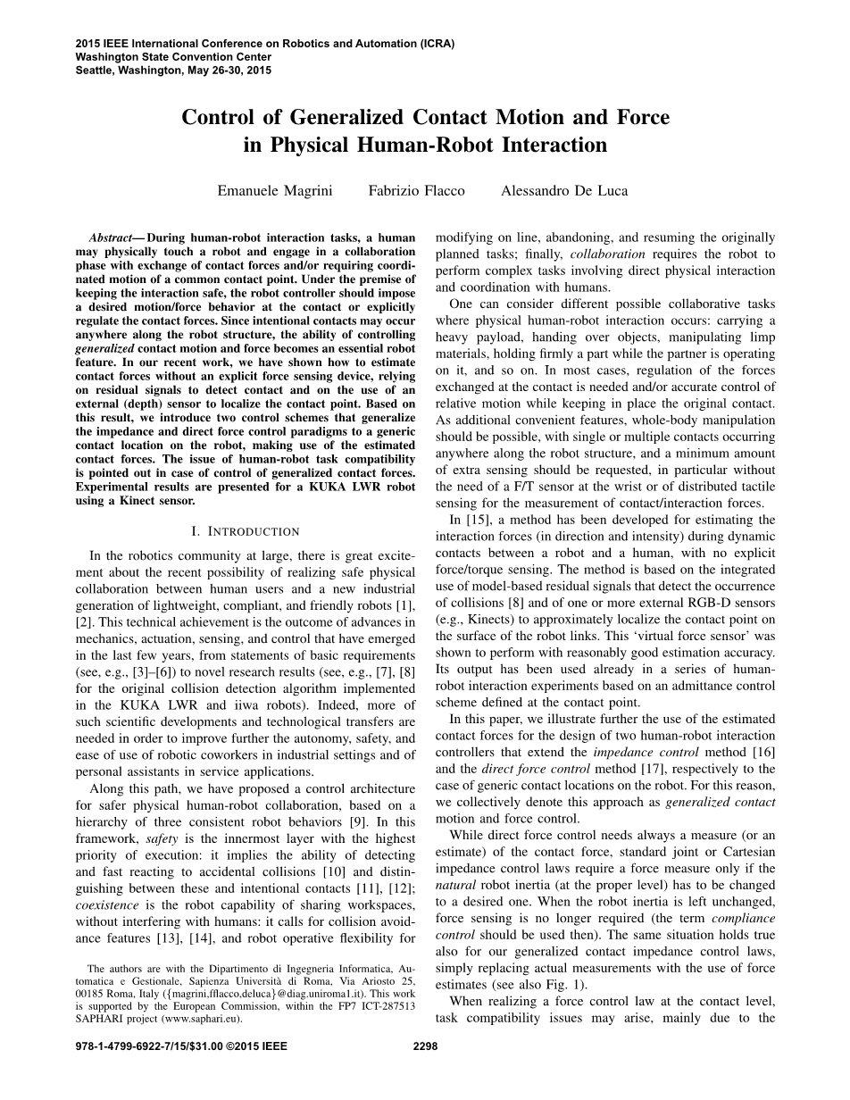工业机器人阻抗控制基础原理与设计外文翻译资料 2021-11-04 22:30:49 英语原文共 7 页 英语原文共 15 页 原文和译文剩余内容已隐藏,您需要先支付 30元 才能查看原文和译文全部内容!立即支付 发小红书推广免费获取该资料资格。点击链接进入获取推广文案即可: Ai一键组稿 | 降AI率 | 降重复率 | 论文一键排版 PREVIOUS NEXT 您可能感兴趣的文章 流化床包衣造粒过程的监测与控制研究外文翻译资料 一种新颖的旋转流化床包衣细颗粒涂层的方法外文翻译资料 中国城市垃圾的处理和管理外文翻译资料 滤袋、气旋、和湿式除尘方法在真空吸尘器中的比较外文翻译资料 一个灵活的模型辗环机设计外文翻译资料 带有柔性转子的主动电磁轴承系统的识别外文翻译资料 柔性阻尼支承下转子振动特性实验外文翻译资料 MapReduce:超大集群上的数据简化处理外文翻译资料 垂直循环式立体车库的停车与乘车调度优化外文翻译资料 高灵敏度、高稳定性的自温度补偿电涡流位移传感器外文翻译资料