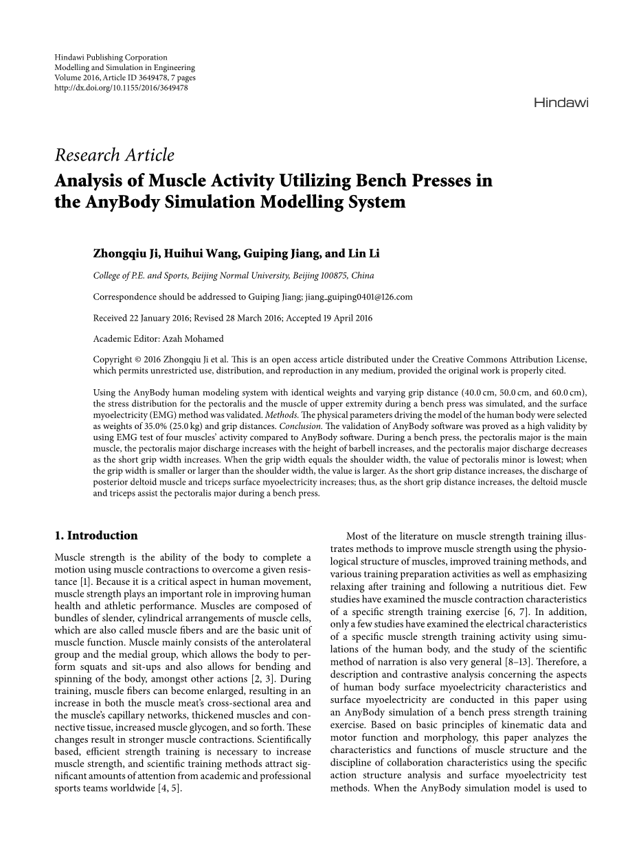可以有两种方法来比较DHM工具中替代工作场所布局的可接受性:经验统计建模和肌肉骨骼建模。先验包括众所周知的软件程序,如3DSSPP和Jack,并利用静态强度模型(Chaffin等,2006)来评估由于工作任务请求引起的反应体关节力矩。将这些关节时刻与经验人口强度数据库进行比较,以估计能够执行任务的人口百分位数。具有百分位数的能力被广泛用于比较替代布局中的工作任务需求(Bertoloni等人,2012; Tripathi等人,2015; Zhang等人,2013)。后一种方法,即肌肉骨骼建模,由AnyBody Modeling Systems(AMS)等软件组成,使用数学建模技术来模拟人类肌肉骨骼结构中的各种肌肉和骨骼。肌肉被建模为收缩力生成元素,而骨骼则是刚性元素。模型中的每个肌肉都根据其大小分配强度,并且其对执行工作任务的贡献由逆动力学分析中的优化问题的解决方案确定(Damsgaard等人,2006)。肌肉贡献与其相应强度之间的比率,即肌肉激活水平,已被用于比较替代工作场所布局的可接受性(Pontonnier等,2014; Xu等,2016)。模型中的每个肌肉都根据其大小分配强度,并且其对执行工作任务的贡献由逆动力学分析中的优化问题的解决方案确定(Damsgaard等人,2006)。肌肉贡献与其相应强度之间的比率,即肌肉激活水平,已被用于比较替代工作场所布局的可接受性(Pontonnier等,2014; Xu等,2016)。模型中的每个肌肉都根据其大小分配强度,并且其对执行工作任务的贡献由逆动力学分析中的优化问题的解决方案确定(Damsgaard等人,2006)。肌肉贡献与其相应强度之间的比率,即肌肉激活水平,已被用于比较替代工作场所布局的可接受性(Pontonnier等,2014; Xu等,2016)。