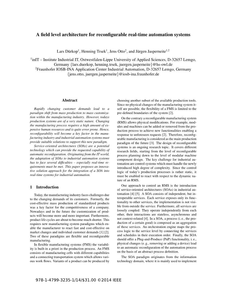 1inIT——工业IT研究所,奥斯特韦斯特法伦利普应用科学大学,D32657——莱姆戈,德国{拉尔斯·迪科普,亨宁·特塞克,尤尔根·贾斯珀内特}@hs-owl.de2