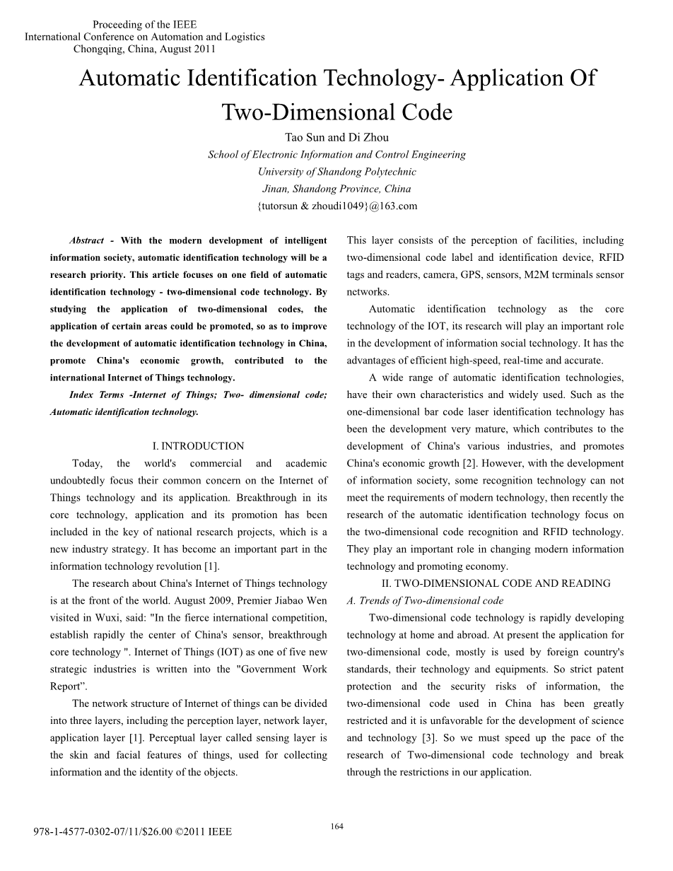 自动识别技术 – 二维码的应用外文翻译资料