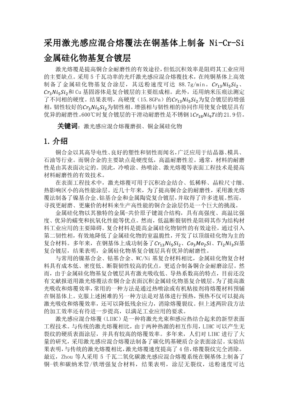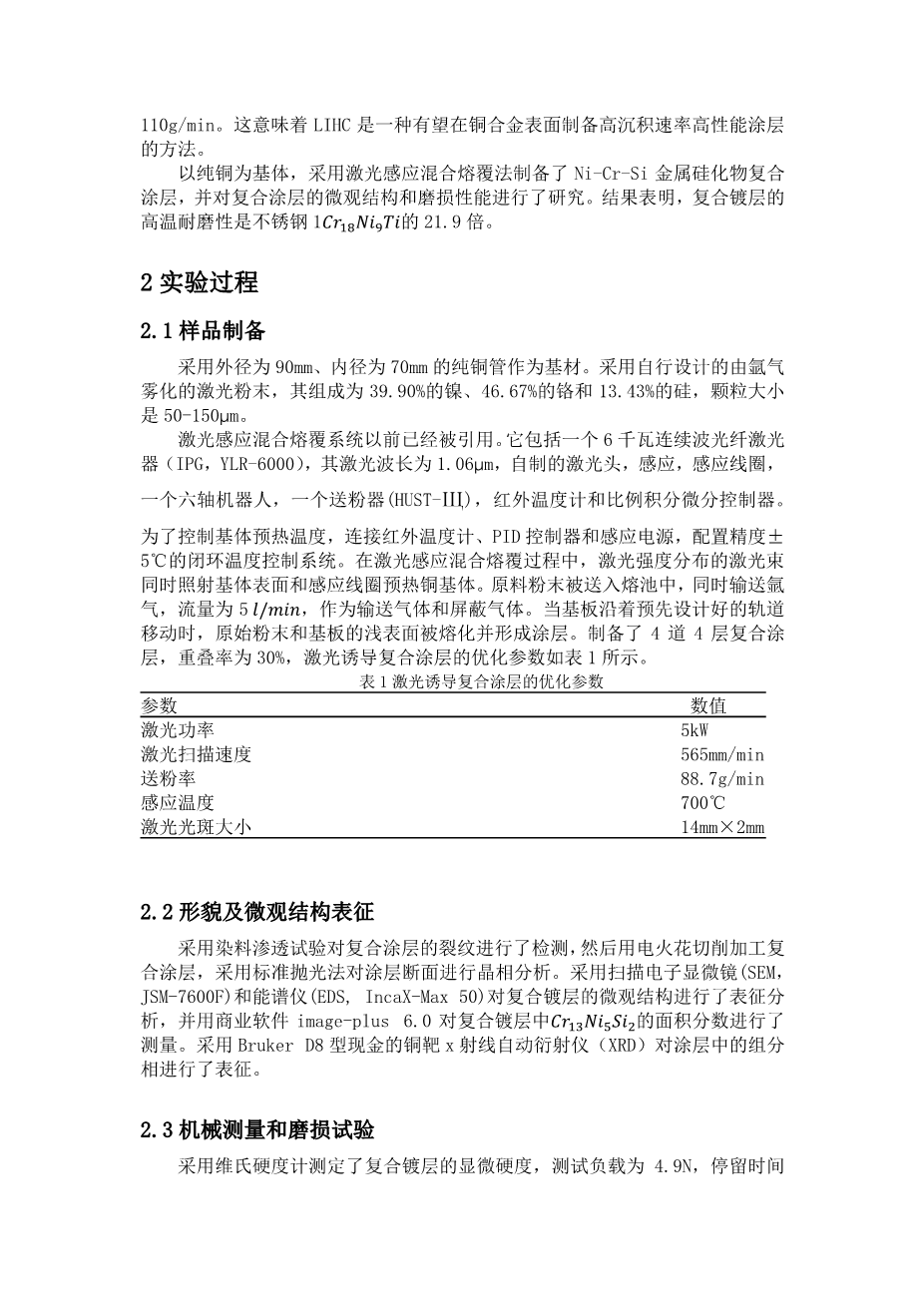 激光熔覆高强高导铜基复合涂层工艺研究外文翻译资料 2022-01-02 17:00:55 英语原文共 10 页,剩余内容已隐藏,支付完成后下载完整资料 资料编号:[2558] 原文和译文剩余内容已隐藏,您需要先支付 30元 才能查看原文和译文全部内容!立即支付 发小红书推广免费获取该资料资格。点击链接进入获取推广文案即可: Ai一键组稿 | 降AI率 | 降重复率 | 论文一键排版 PREVIOUS NEXT 您可能感兴趣的文章 流化床包衣造粒过程的监测与控制研究外文翻译资料 一种新颖的旋转流化床包衣细颗粒涂层的方法外文翻译资料 中国城市垃圾的处理和管理外文翻译资料 滤袋、气旋、和湿式除尘方法在真空吸尘器中的比较外文翻译资料 一个灵活的模型辗环机设计外文翻译资料 带有柔性转子的主动电磁轴承系统的识别外文翻译资料 柔性阻尼支承下转子振动特性实验外文翻译资料 MapReduce:超大集群上的数据简化处理外文翻译资料 垂直循环式立体车库的停车与乘车调度优化外文翻译资料 高灵敏度、高稳定性的自温度补偿电涡流位移传感器外文翻译资料