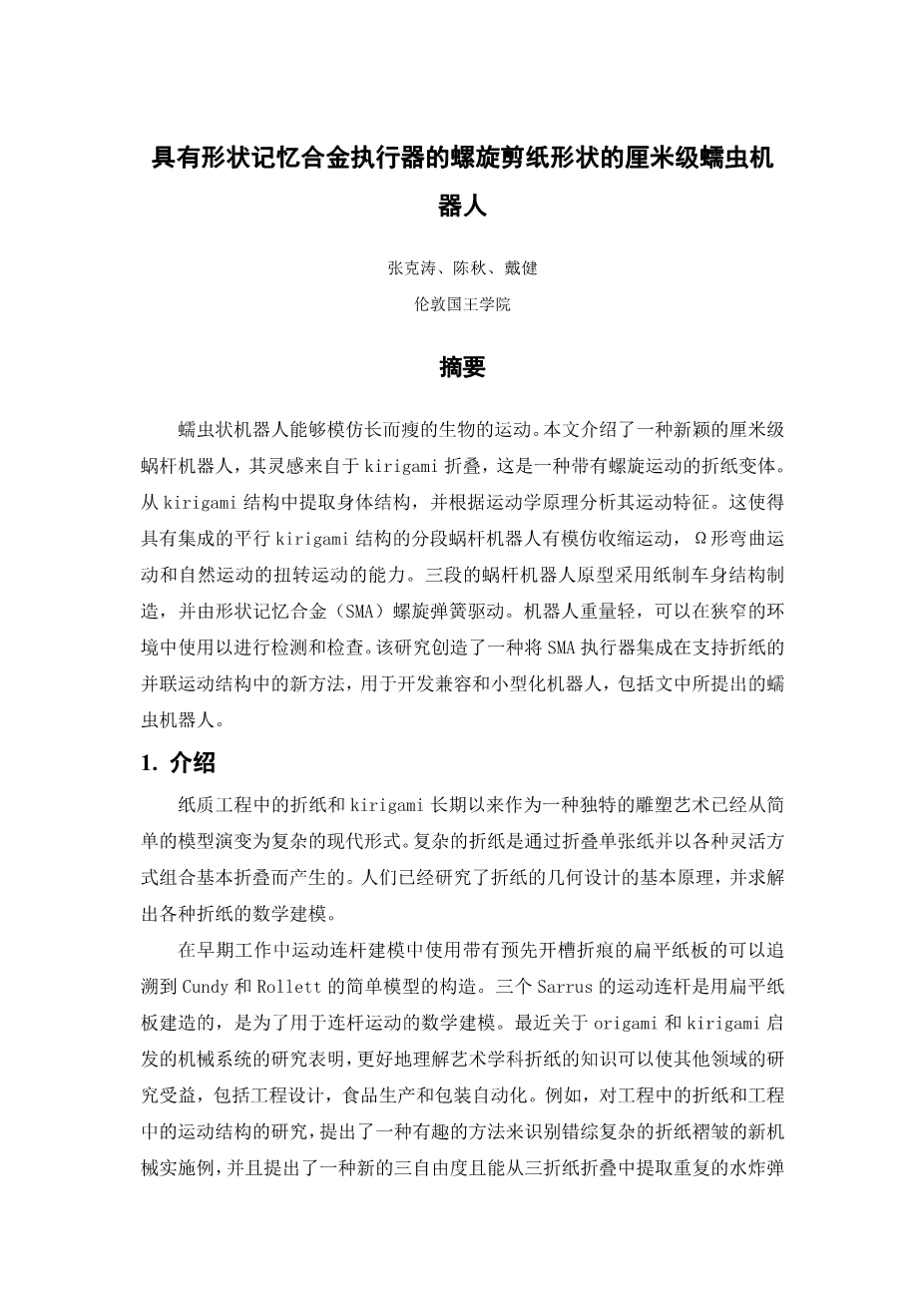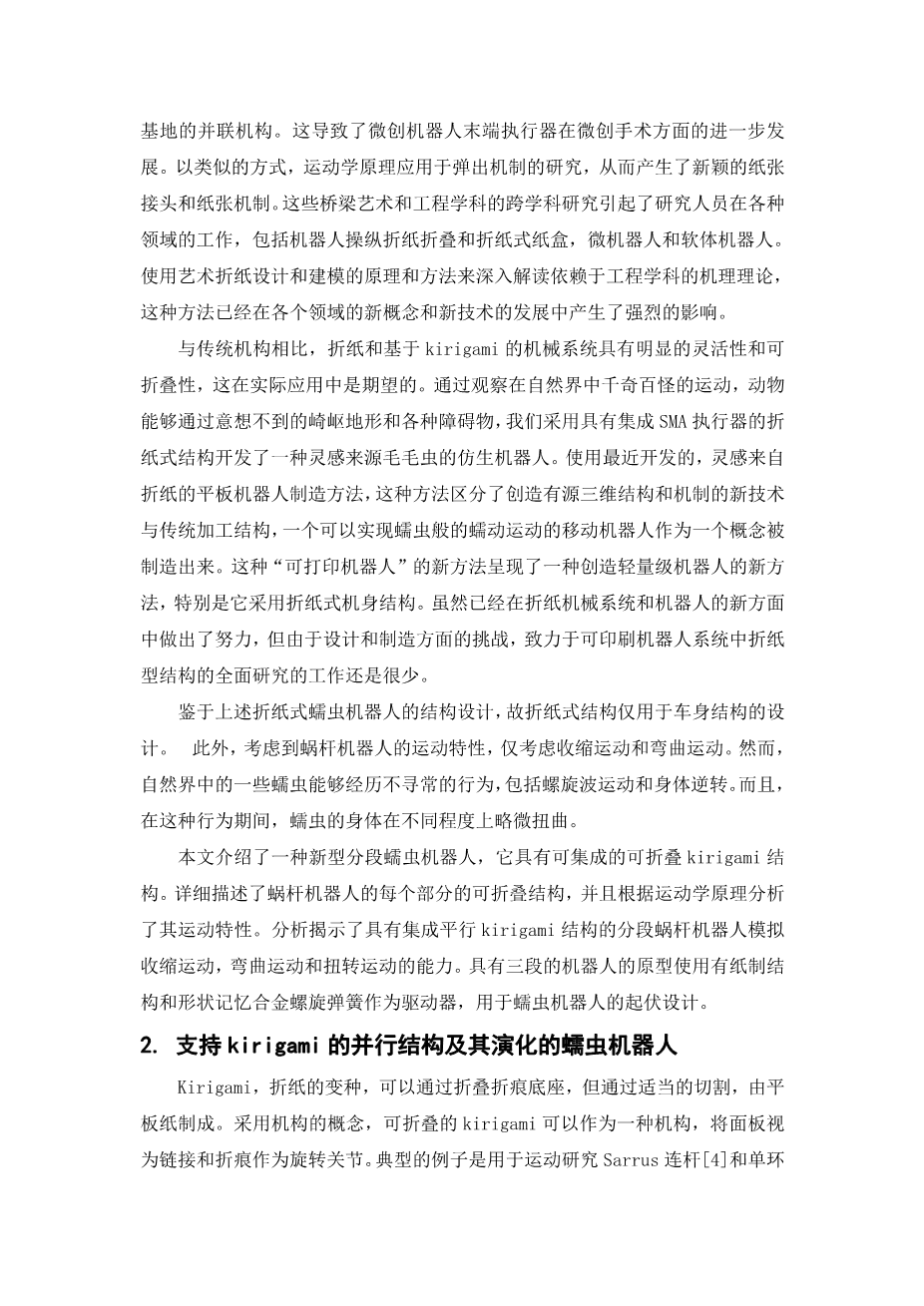 基于SMA弹簧驱动的仿尺蠖机器人结构设计外文翻译资料 2022-01-08 22:10:58 英语原文共 17 页,剩余内容已隐藏,支付完成后下载完整资料 资料编号:[1829] 原文和译文剩余内容已隐藏,您需要先支付 30元 才能查看原文和译文全部内容!立即支付 发小红书推广免费获取该资料资格。点击链接进入获取推广文案即可: Ai一键组稿 | 降AI率 | 降重复率 | 论文一键排版 PREVIOUS NEXT 您可能感兴趣的文章 流化床包衣造粒过程的监测与控制研究外文翻译资料 一种新颖的旋转流化床包衣细颗粒涂层的方法外文翻译资料 中国城市垃圾的处理和管理外文翻译资料 滤袋、气旋、和湿式除尘方法在真空吸尘器中的比较外文翻译资料 一个灵活的模型辗环机设计外文翻译资料 带有柔性转子的主动电磁轴承系统的识别外文翻译资料 柔性阻尼支承下转子振动特性实验外文翻译资料 MapReduce:超大集群上的数据简化处理外文翻译资料 垂直循环式立体车库的停车与乘车调度优化外文翻译资料 高灵敏度、高稳定性的自温度补偿电涡流位移传感器外文翻译资料