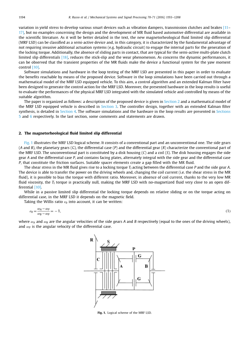 本文具体内容如下:第2节给出了该装置的描述,第3节给出了MRF LSD装备车辆的数学模型。控制器的设计,以及一个扩展的卡尔曼滤波器综合,详细的分析在第4节。软件仿真和硬件仿真结果分别在第5节和第6节中给出。最后一节为小结。