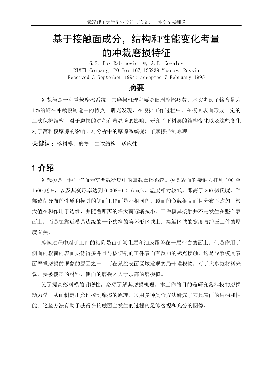 弹性挡圈连续冲裁模的设计外文翻译资料 2022-01-21 22:11:43 英语原文共 7 页,剩余内容已隐藏,支付完成后下载完整资料 英语原文共 10 页,剩余内容已隐藏,支付完成后下载完整资料资料编号:[756] 原文和译文剩余内容已隐藏,您需要先支付 30元 才能查看原文和译文全部内容!立即支付 发小红书推广免费获取该资料资格。点击链接进入获取推广文案即可: Ai一键组稿 | 降AI率 | 降重复率 | 论文一键排版 PREVIOUS NEXT 您可能感兴趣的文章 流化床包衣造粒过程的监测与控制研究外文翻译资料 一种新颖的旋转流化床包衣细颗粒涂层的方法外文翻译资料 中国城市垃圾的处理和管理外文翻译资料 滤袋、气旋、和湿式除尘方法在真空吸尘器中的比较外文翻译资料 一个灵活的模型辗环机设计外文翻译资料 带有柔性转子的主动电磁轴承系统的识别外文翻译资料 柔性阻尼支承下转子振动特性实验外文翻译资料 MapReduce:超大集群上的数据简化处理外文翻译资料 垂直循环式立体车库的停车与乘车调度优化外文翻译资料 高灵敏度、高稳定性的自温度补偿电涡流位移传感器外文翻译资料