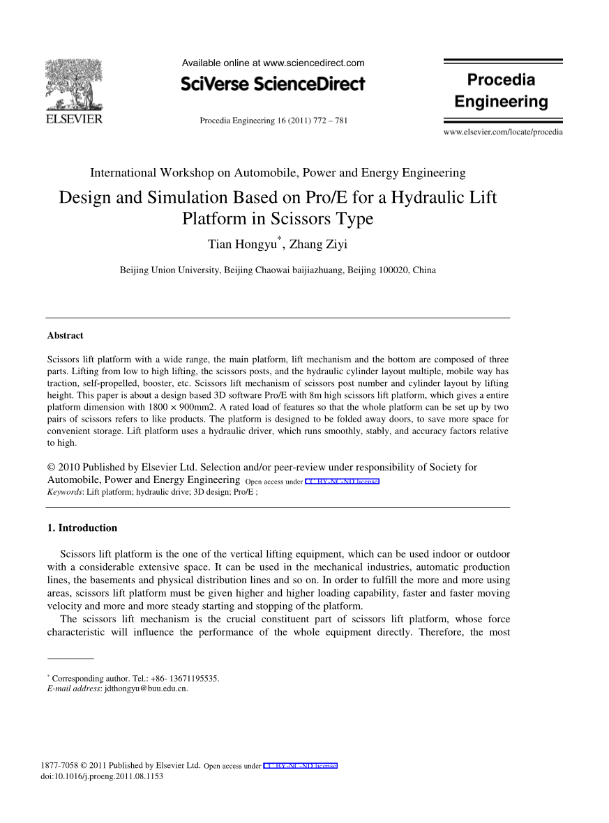 剪刀升降平台具有广泛的范围,主平台,升降机构和底部三部分组成。 从低到高的升降,剪刀柱,液压缸布置多个,移动方式有牵引,自走式,助力器等。剪刀升降机构的剪刀柱号和缸体布置由提升高度。 本文是一个基于设计的3D软件Pro / E,配有8米高的剪式升降平台,整个平台尺寸为1800times;900mm2。 额定负载的功能使得整个平台可以通过两把剪刀设置指的是同类产品。 该平台设计为折叠门,以节省更多空间,方便存放。 升降平台采用液压驱动,运行平稳,稳定,精度高。