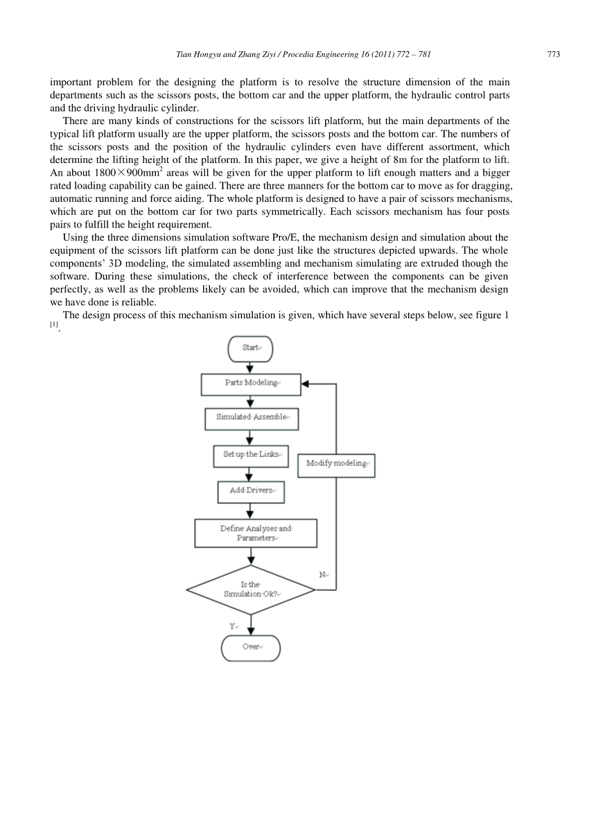 在本文中,可以完成基于Pro / E的剪式升降平台的设计,如主要组件3D建模,视觉组装,干涉检查等,这有助于设计人员在2D设计中发现问题[4]。 从三维软件建立的模型表达了设计者关于工作的充分理念。