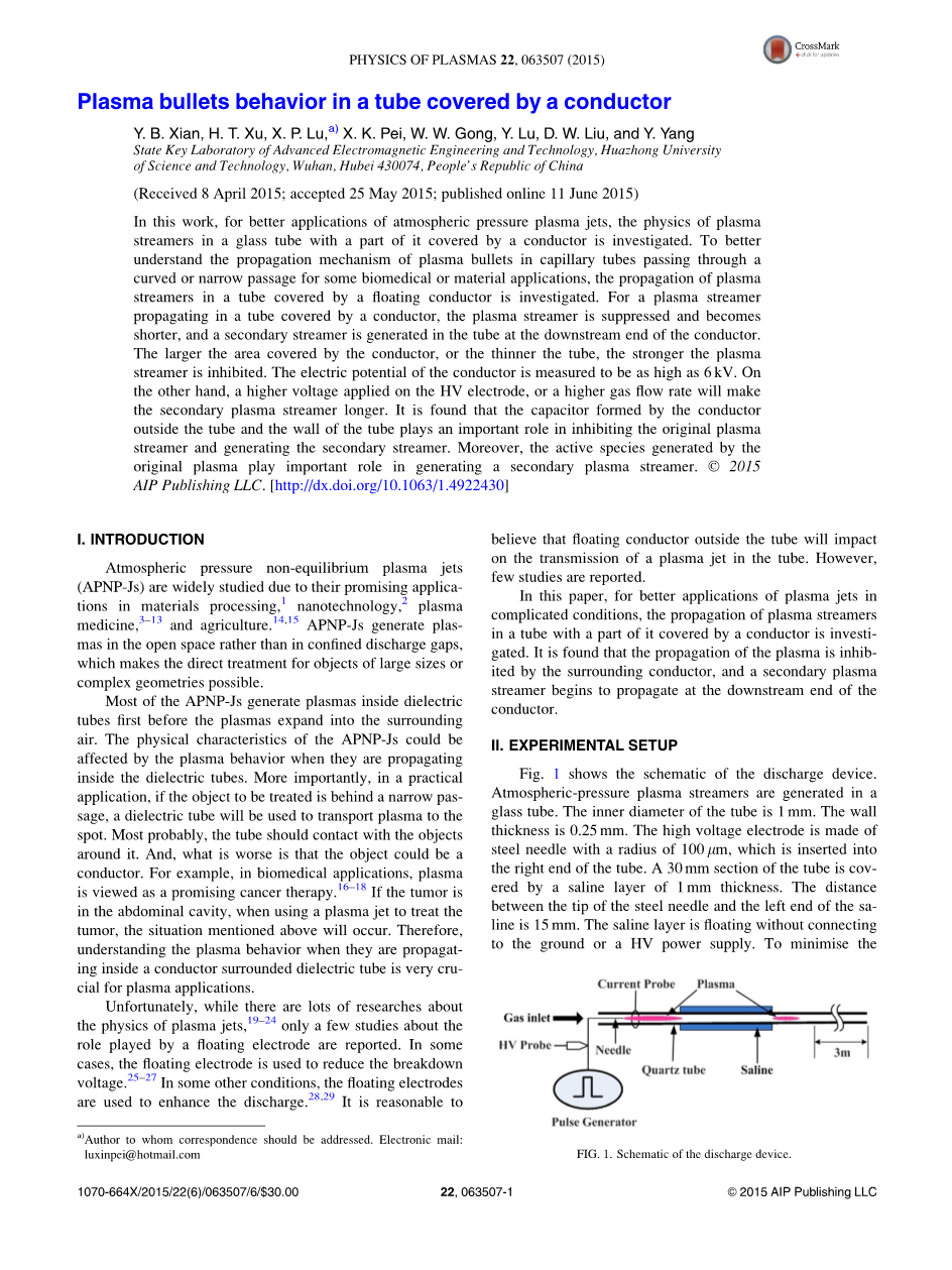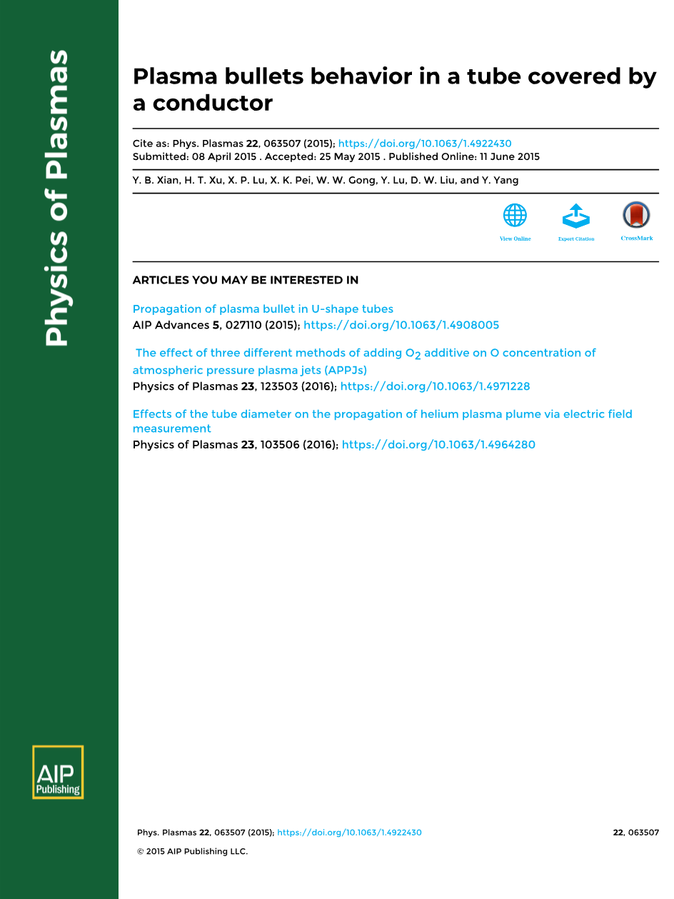Y. B. Xian, H. T. Xu, X. P. Lu, X. K. Pei, W. W. Gong, Y. Lu, D. W. Liu, and Y.Yang