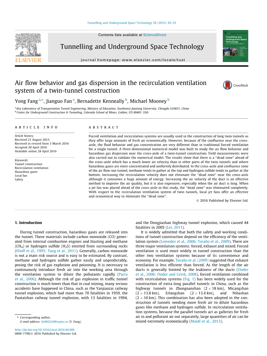 Keywords:tunnel construction ;recirculation ventilation ;hazardous gases ;local fan ;safety