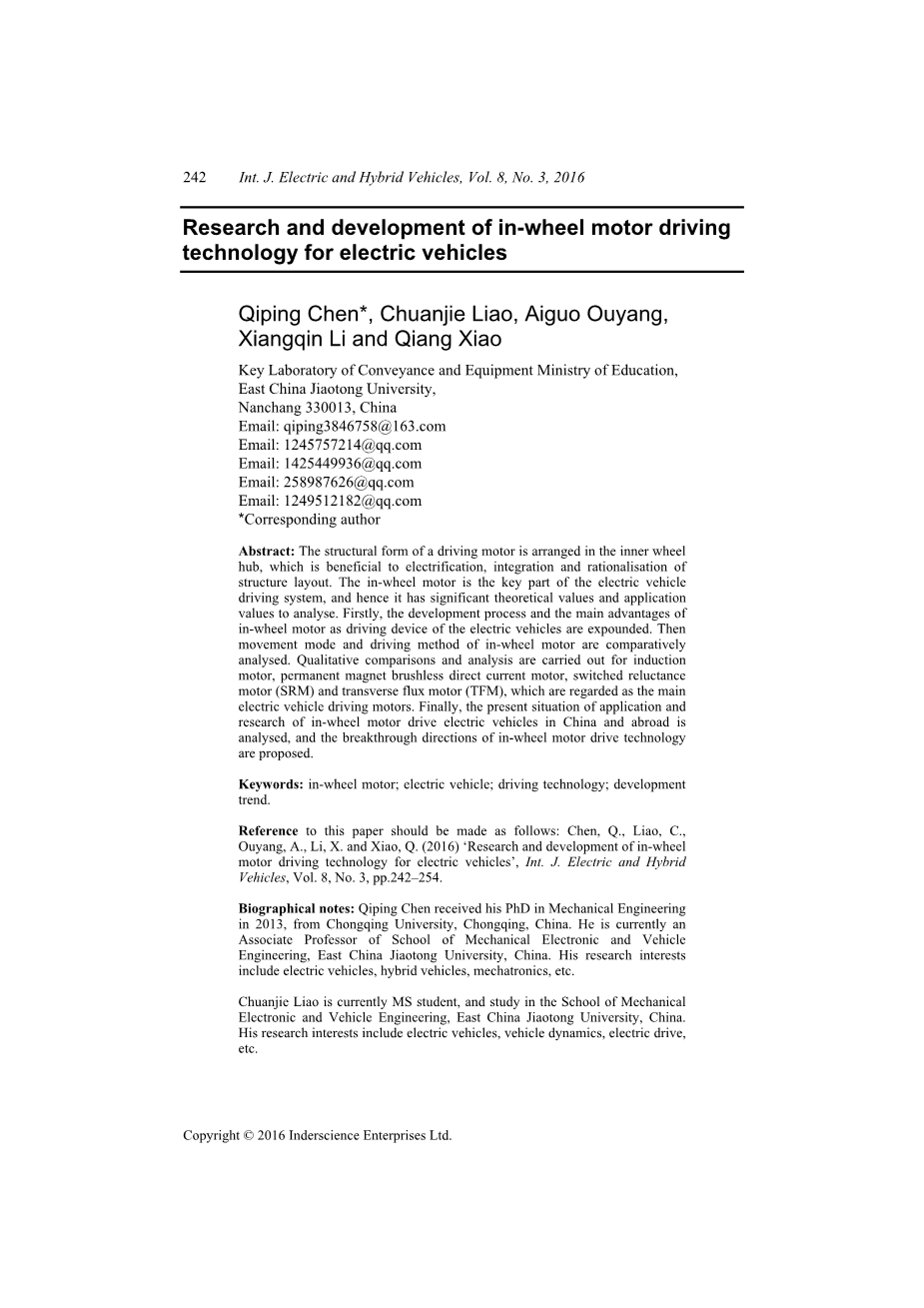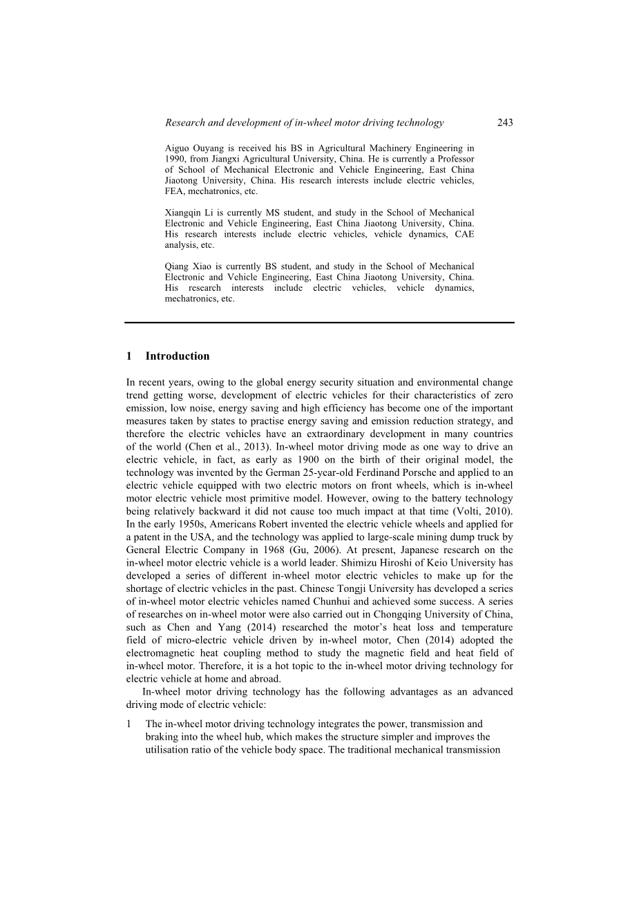 关键词:轮毂电机;电动汽车;驱动技术;发展趋势