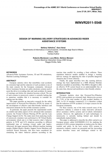 本文针对目前在PTW背景下进行的研究,与汽车领域相比,FCW和LCS已被继承,这是最新的:他们的HMI和相应的警告信息方案仍在调查中,负责驾驶员和驾驶员之间的差异。 车手,车手的身体和注意力资源,同时应对驾驶任务和车辆特征。
