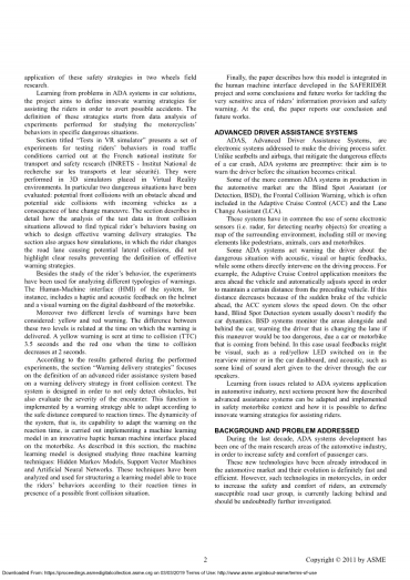 本文旨在描述一个名为SAFERIDER [2,3]的欧洲在研项目,该研究旨在研究ADA系统集成在摩托车上对于乘客舒适性和安全性的潜力。在下一节中,将介绍汽车行业背景下的ADA系统,后续部分描述了在两轮实地研究中应用这些安全策略的相关问题和挑战。