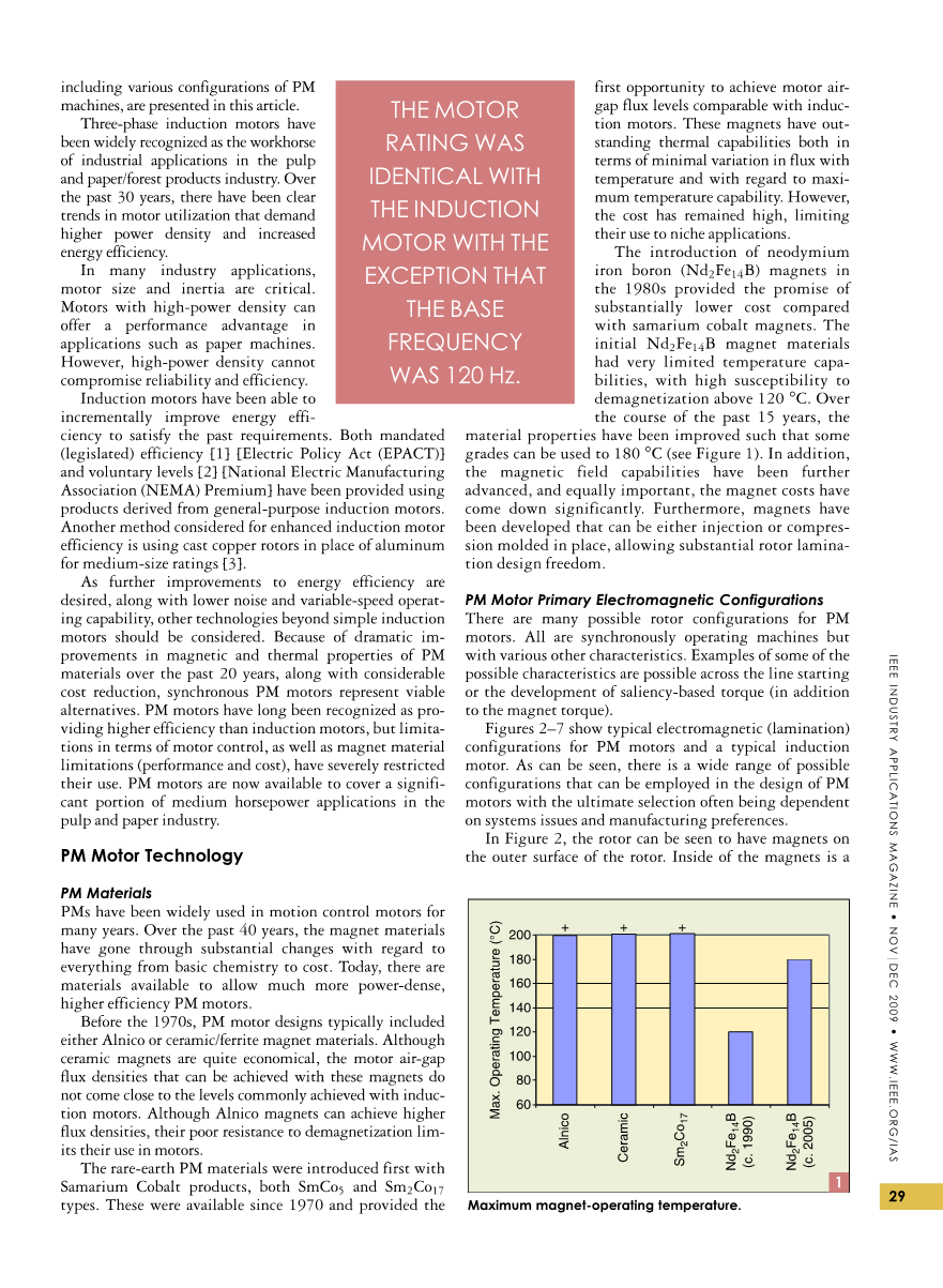 目前,电机的市场前景和未来的市场前景都非常重要,因为它具有很高的功率密度、操作效率、可靠性、变速运行和低成本。Perma nent磁体(PM)发动机现在能够满足市场的期望。与高效的感应电动机相比,PM电动机具有效率高、可靠性高的特点,并且具有更高的功率密度(单位质量或体积)、优越的功率因数(低电流)、低转子温度和同步操作等优点。磁网技术的发展允许在更高的温度下操作而不造成永久的磁化损失。由于稀土磁体的供应,如钕铁硼的价格更低,所以现在的经济上可行。本文介绍了感应电动机、表面PM和凸极电机的性能比较,包括各种型号的PM机器。