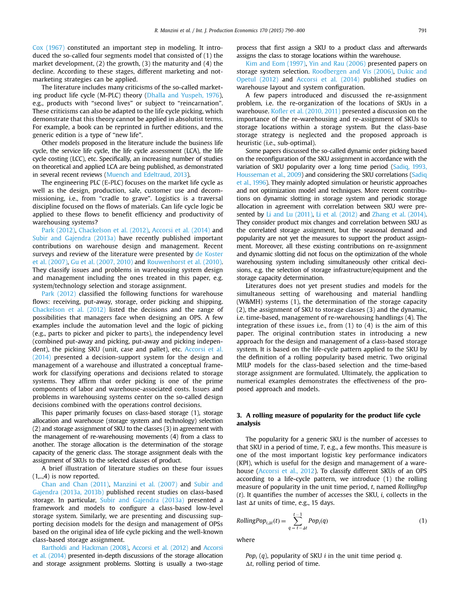 本文的其余部分安排如下:第2节介绍产品生命周期和存储的文献综述。第3节介绍了流行性的滚动测量用于将SKU分类为周期存储。第4节提出了MILP模型的建议来确定系统的能力。