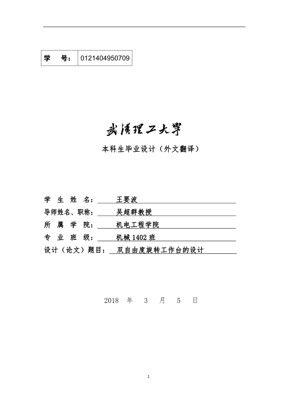 双自由度旋转工作台的设计外文翻译资料 2022-03-26 19:20:27 英语原文共 11 页,剩余内容已隐藏,支付完成后下载完整资料 英语原文共 14 页,剩余内容已隐藏,支付完成后下载完整资料资料编号:[15239],资料为PDF文档或Word文档,PDF文档可免费转换为Word 原文和译文剩余内容已隐藏,您需要先支付 30元 才能查看原文和译文全部内容!立即支付 发小红书推广免费获取该资料资格。点击链接进入获取推广文案即可: Ai一键组稿 | 降AI率 | 降重复率 | 论文一键排版 PREVIOUS NEXT 您可能感兴趣的文章 流化床包衣造粒过程的监测与控制研究外文翻译资料 一种新颖的旋转流化床包衣细颗粒涂层的方法外文翻译资料 中国城市垃圾的处理和管理外文翻译资料 滤袋、气旋、和湿式除尘方法在真空吸尘器中的比较外文翻译资料 一个灵活的模型辗环机设计外文翻译资料 带有柔性转子的主动电磁轴承系统的识别外文翻译资料 柔性阻尼支承下转子振动特性实验外文翻译资料 MapReduce:超大集群上的数据简化处理外文翻译资料 垂直循环式立体车库的停车与乘车调度优化外文翻译资料 高灵敏度、高稳定性的自温度补偿电涡流位移传感器外文翻译资料