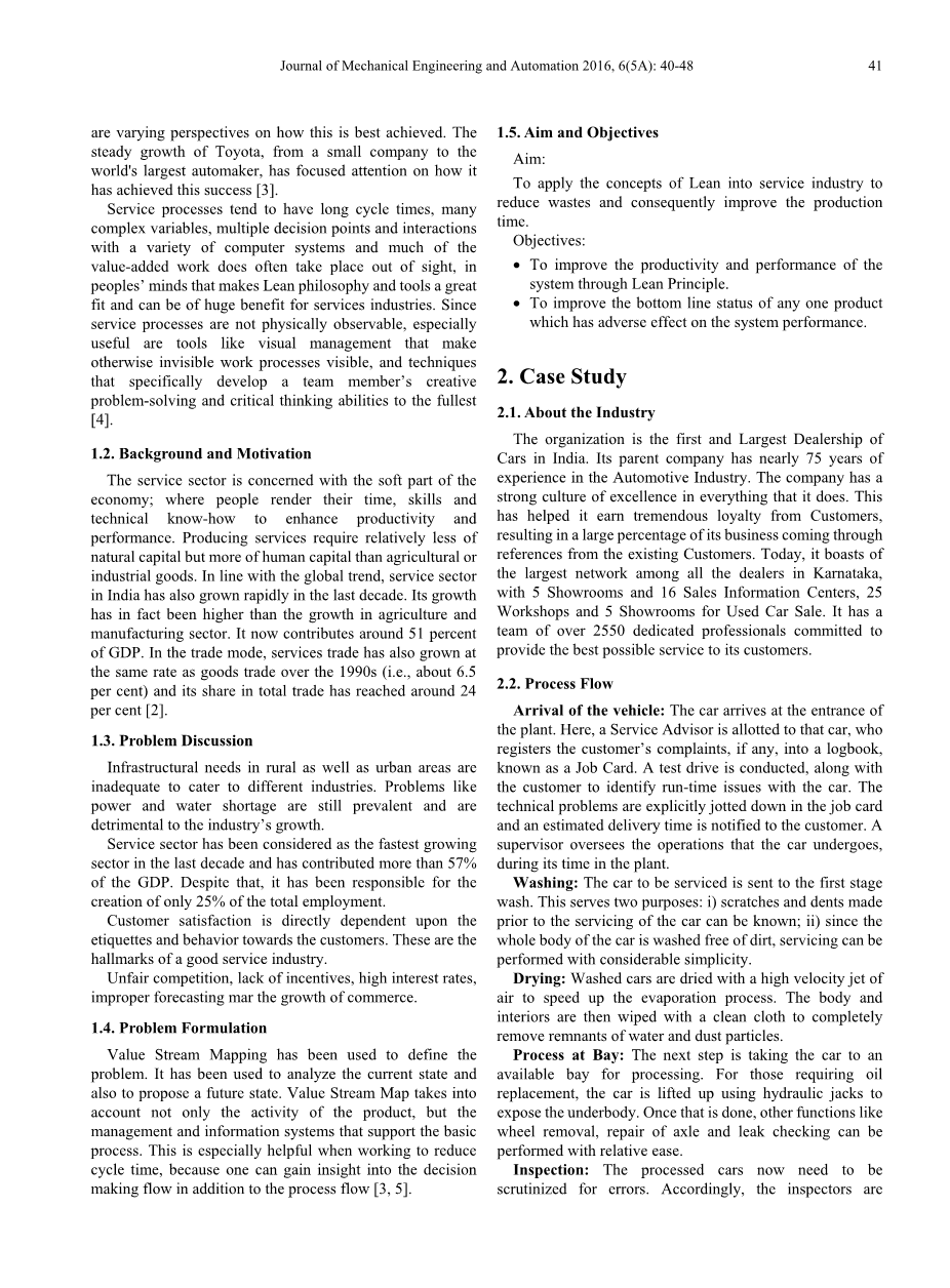 文章从精益思想的角度对提升汽车服务质量进行研究,探究了如何进行汽车服务质量提升的方法。为保证工艺的可持续性,对工艺参数进行了优化和测量。精益战略导致了与生产过程相关的能源和非增值活动的减少。此外,研究还创造了视觉化的工作环境,增强了生产氛围,创造了简单易行的工艺设计,为未来的持续改进打下基础。由于这项研究的结果,生产率将每天增加15辆车,这将是本组织的一项显著成就。该研究为组织提供了关于质量概念的适用性和重要性的指导。为了生存,组织需要持续地从事面向发展的活动;不管这些活动是如何标记的。本研究也将作为该领域进一步研究的基础,重点关注这些概念的实践经验。希望本文的研究能够为汽车服务的发展起到进一步推动作用,使其更好的适应现代这样一个竞争激烈的时代。