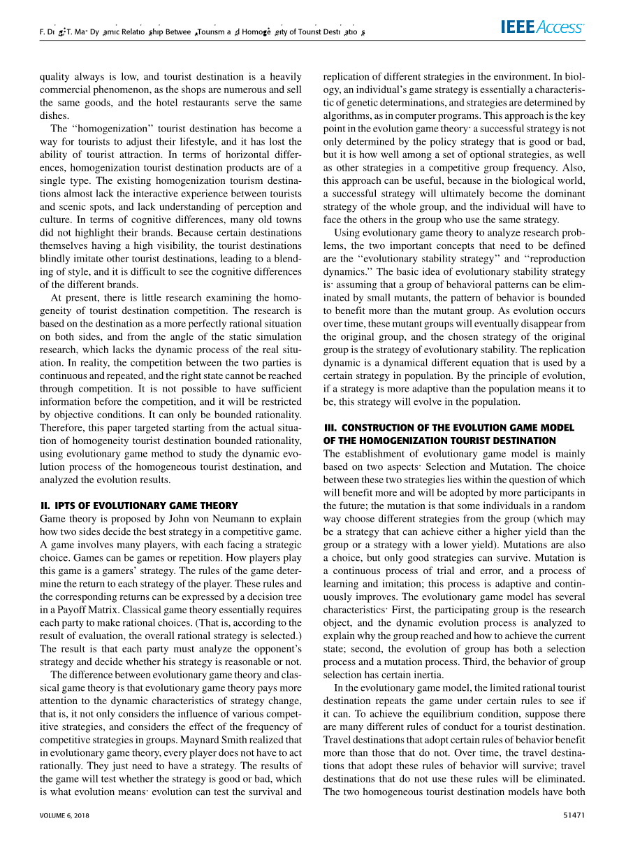 复制系统的动力学方程可以保证进化稳定策略最终产生平衡,但在一般动力学方程中是稳定的。该策略既不是进化均衡的充分条件,也不是进化均衡的必要条件。进化博弈论越来越有用。最全面的均衡概念是进化稳定策略,最终达到均衡。由于旅游目的地的行为一直在变化,因此可以合理地假设有变化。旅游目的地主体在演化过程中不断完善其行为和模拟。成功的策略需要相当长的时间。时间是不可逆的,过去和未来的状态是不正确的。因此,主体状态的演化与初始状态时间密切相关,在进化过程中,随机(突变)因素起着关键作用,进化过程中伴随着三元误差的发生,参与者将尝试各种行为策略。稍微,每次都会有一个部分的替换。