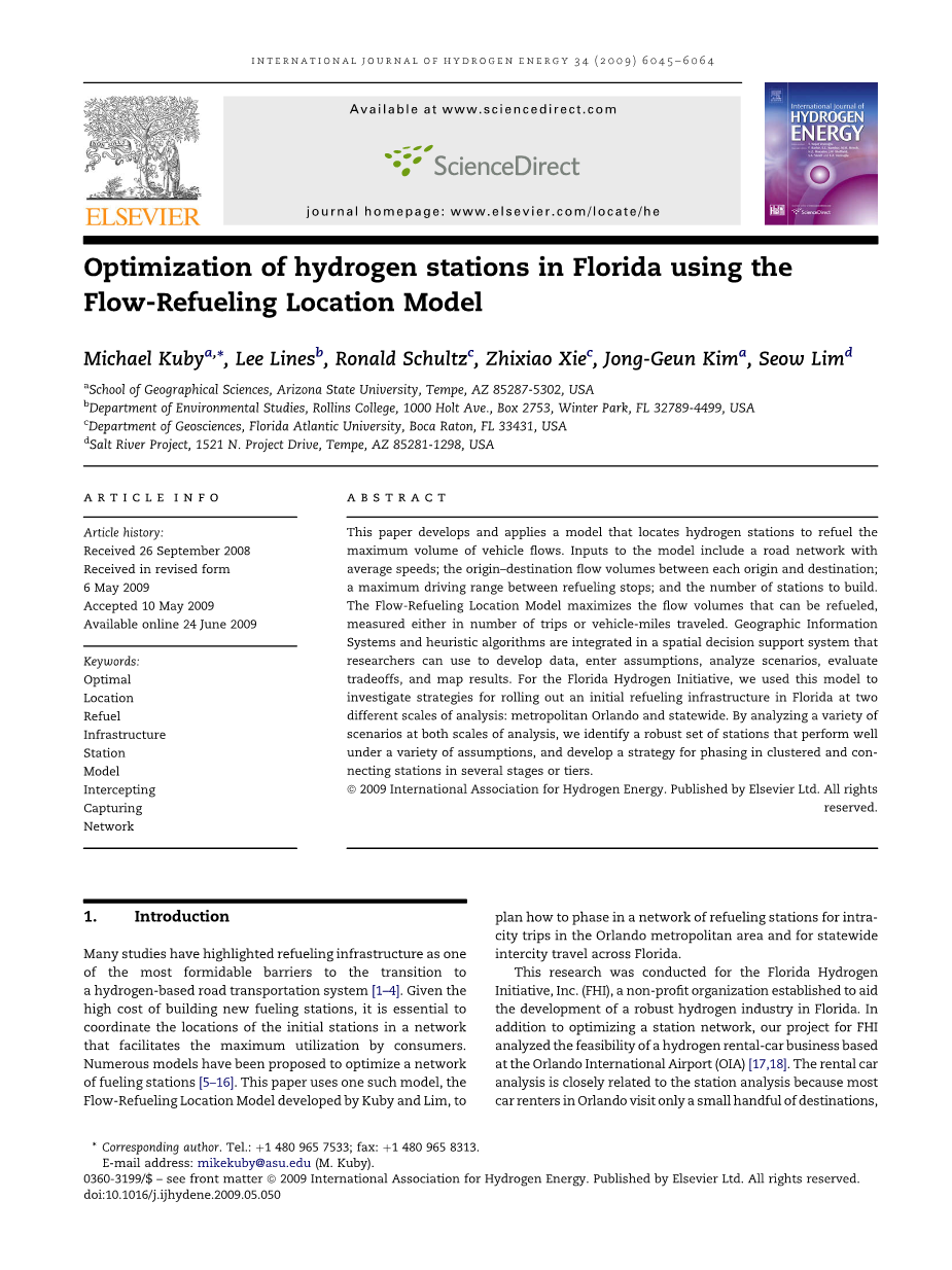 基于截流加注选址模型的佛罗里达氢站的优化研究Michael Kub,Lee Line, Ronald Schult, Zhixiao Xi, Jong-Geun Ki, Seow Li