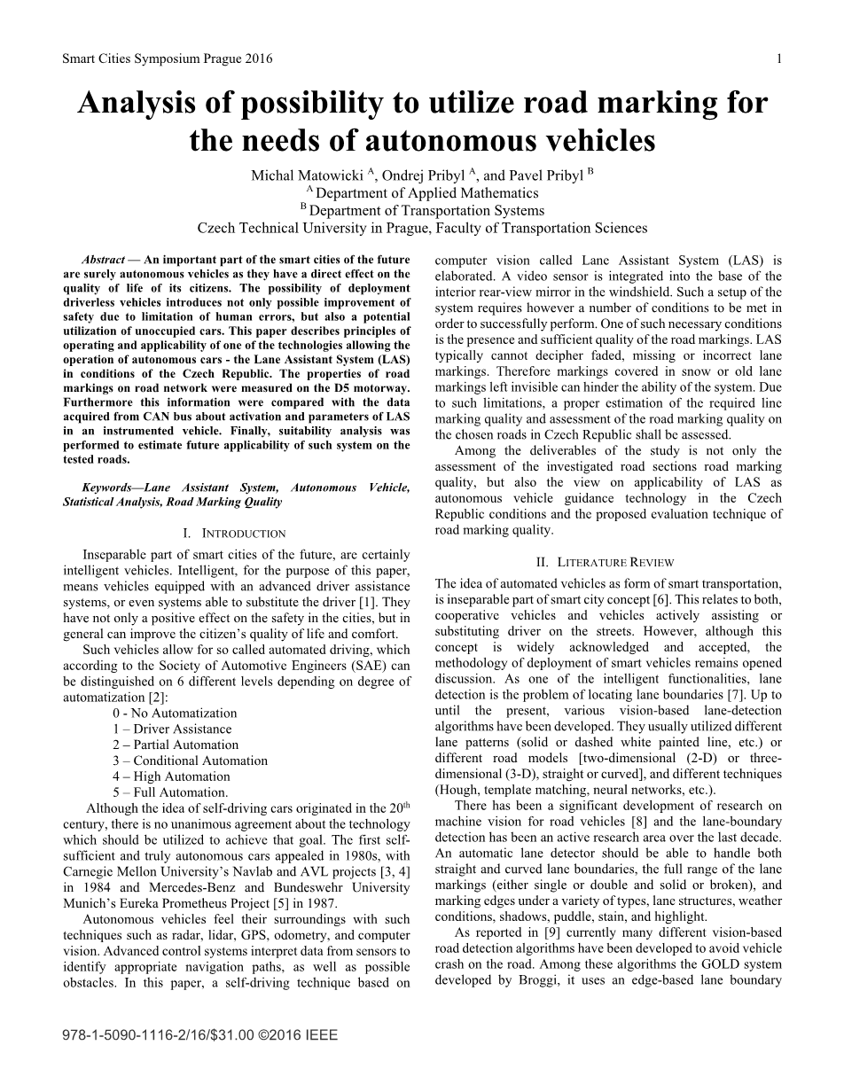 无人驾驶前景及可行性分析研究外文翻译资料 2022-06-07 21:47:22 英语原文共 6 页,剩余内容已隐藏,支付完成后下载完整资料 资料编号:[11204],资料为PDF文档或Word文档,PDF文档可免费转换为Word 原文和译文剩余内容已隐藏,您需要先支付 30元 才能查看原文和译文全部内容!立即支付 发小红书推广免费获取该资料资格。点击链接进入获取推广文案即可: Ai一键组稿 | 降AI率 | 降重复率 | 论文一键排版 PREVIOUS NEXT 您可能感兴趣的文章 用不同材料的活塞环评价柴油机性能外文翻译资料 汽车零件挤压成型工艺设计中的模具材料研究外文翻译资料 考虑二手产品升级水平、过年、预防保养与销量的担保决策模型外文翻译资料 发动机零件失效及应对方法分析外文翻译资料 电子商务环境中的在线购买行为模型研究外文翻译资料 丰田方式工业精神分析及对人类工业文明的发展启示外文翻译资料 知识产权在中小型汽车企业中的运用及保护研究外文翻译资料 串联式混合电动汽车新型模型验证和评估方法外文翻译资料 重型自动变速器系统离合器执行器的系统建模和压力控制外文翻译资料 基于MPC5744P芯片的永磁同步电机底层驱动系统开发外文翻译资料