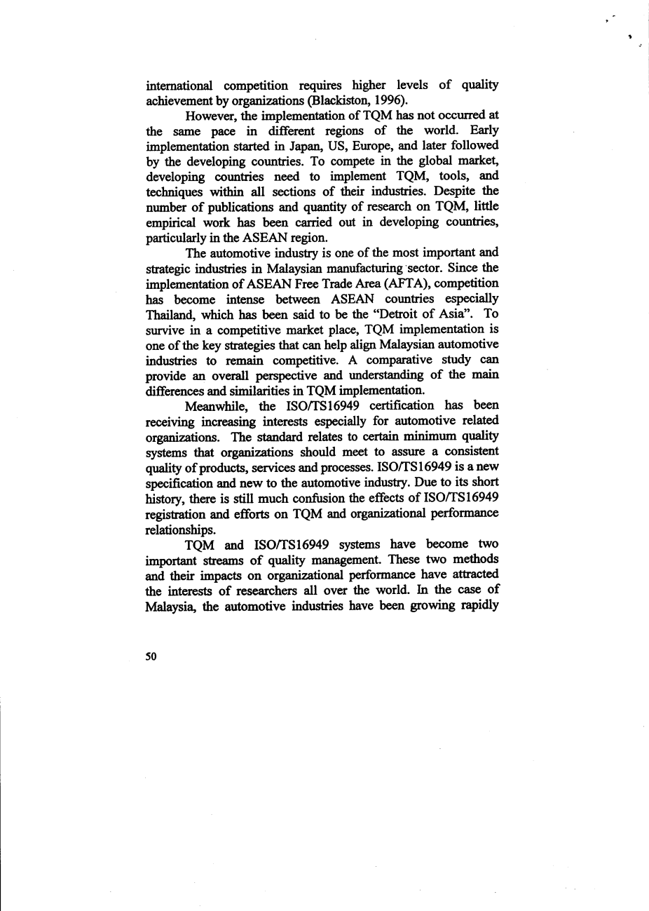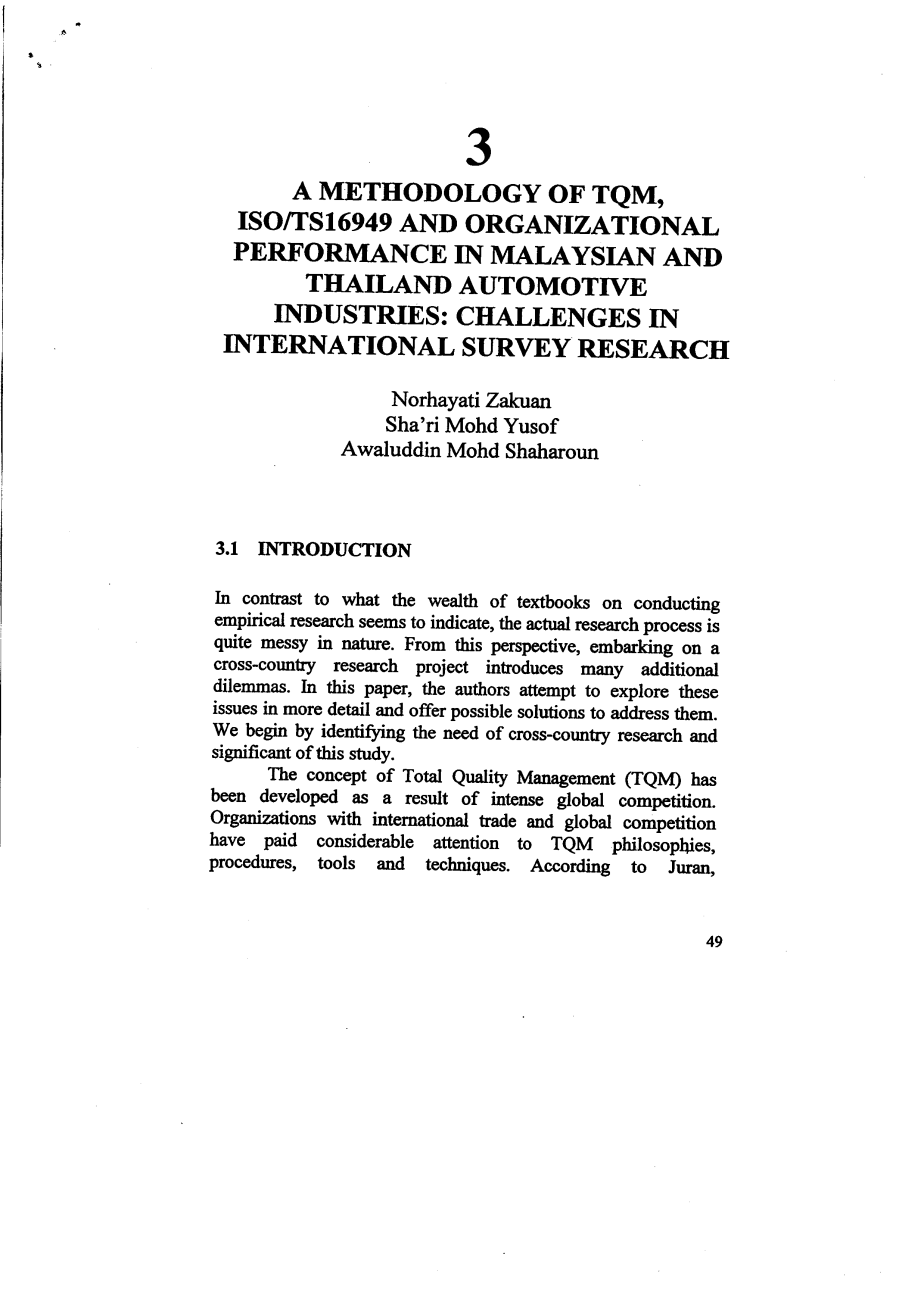 全面质量管理的一种方法论,ISO/TS16949与组织效绩在马来西亚和泰国汽车行业:国际性调查研究挑战