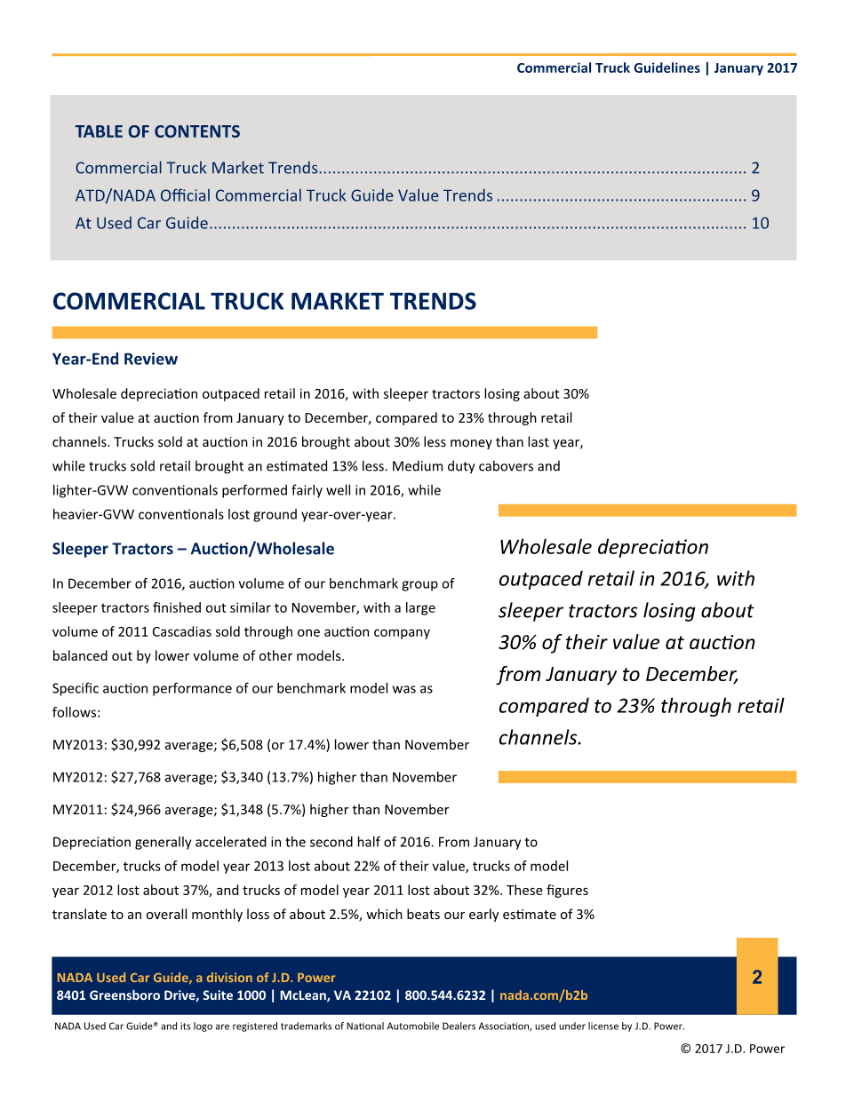 ATD(人才发展协会)和NADA(美国汽车经销商协会)官方商用卡车价值趋势分析..............................................9