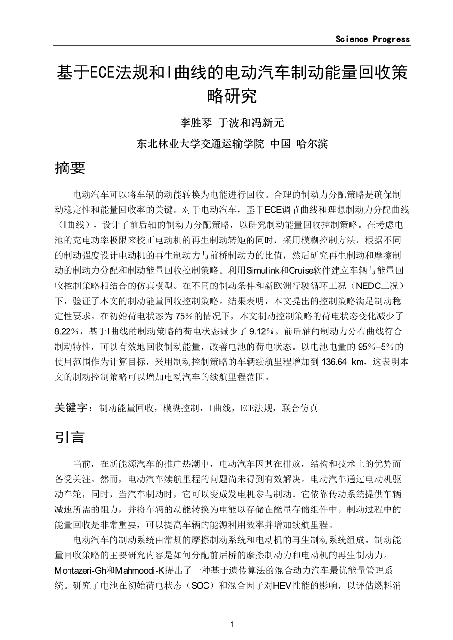 基于ECE法规和l曲线的电动汽车制动能量回收策略研究外文翻译资料