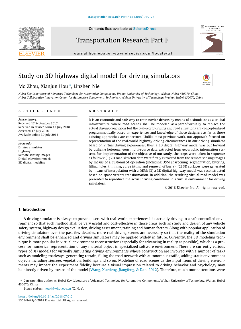驾驶模拟器总是为使用者提供真实的驾驶体验,如在安全控制的环境中进行实际驾驶,使这种方法在任何车辆安全系统的研究和设计、公路设计评价、驾驶评估、培训和人的因素等方面都是非常有用和经济的。随着近几十年来驾驶模拟器的广泛应用,需要更多真实的驾驶场景,从而增强仿真环境的真实性,使驾驶模拟器在未来得到广泛的应用。目前,三维建模技术在虚拟环境重建(尤其是在现实中的应用)中得到了越来越广泛的应用,它是在特定的软件环境中对任何物体进行数值表示的过程。目前,虚拟驾驶环境的三维模型有很多种,包括道路建模、地形生成、道路网络自动交通、添加标志、植被、建筑物等静态环境对象等。将道路场景建模作为驾驶环境的输入项可能会影响实验的逼真度,因为模型可以直接驱动与驾驶行为和心理有关的视觉印象。王雪登,江峰,丹,2012)。因此,驾驶模拟器的道路场景建模方法越来越受到人们的关注。格拉索创建了一个真实的虚拟现实城市模型,通过覆盖道路网络和交通流,建立更实用的驾驶模拟器。Kobayashi,Grasso,amp;McDearmon,2009)。为了在3D Studio MAX软件中建立一个完整的汽车运动系统,彭先生对汽车零部件、驾驶场景和虚拟工具进行了建模。彭、王、杨、张,2014).利用图形质量和速度优化方法,开发了一个高效、逼真的虚拟驾驶环境。Fouladinejad等人,2011年)。基于“瓷砖库”的概念,建立了道路场景驾驶模拟器。Wang等人(2012年). 徐、江、伟、李(2016)模拟一个真实的街景,以评价驾驶行为和车辆产品。然而,这些研究集中在视觉效果上,而不是生成真实世界的几何模型.一般情况下,道路设计人员根据用户的目的和要求,根据要求进行设计,并通过图纸进行展示。程序员将根据设计图纸设计一个3D场景。虚拟场景的构建质量是创造环境交互性的前提。现实主义。现有的虚拟道路环境很难满足驾驶模拟器的高可操作性和现实性的要求,这是基于开发人员独特的想像力在应用3D软件时提出的。
