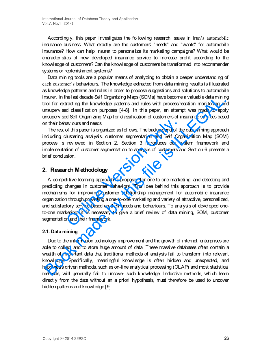 本文的其余部分安排如下。 第2节讨论了数据挖掘方法的背景,包括聚类分析,客户分段和自组织图(SOM)过程。第3节介绍了我们的系统框架和客户分段实施,客户分析,第6节提出了一个简短的结论。