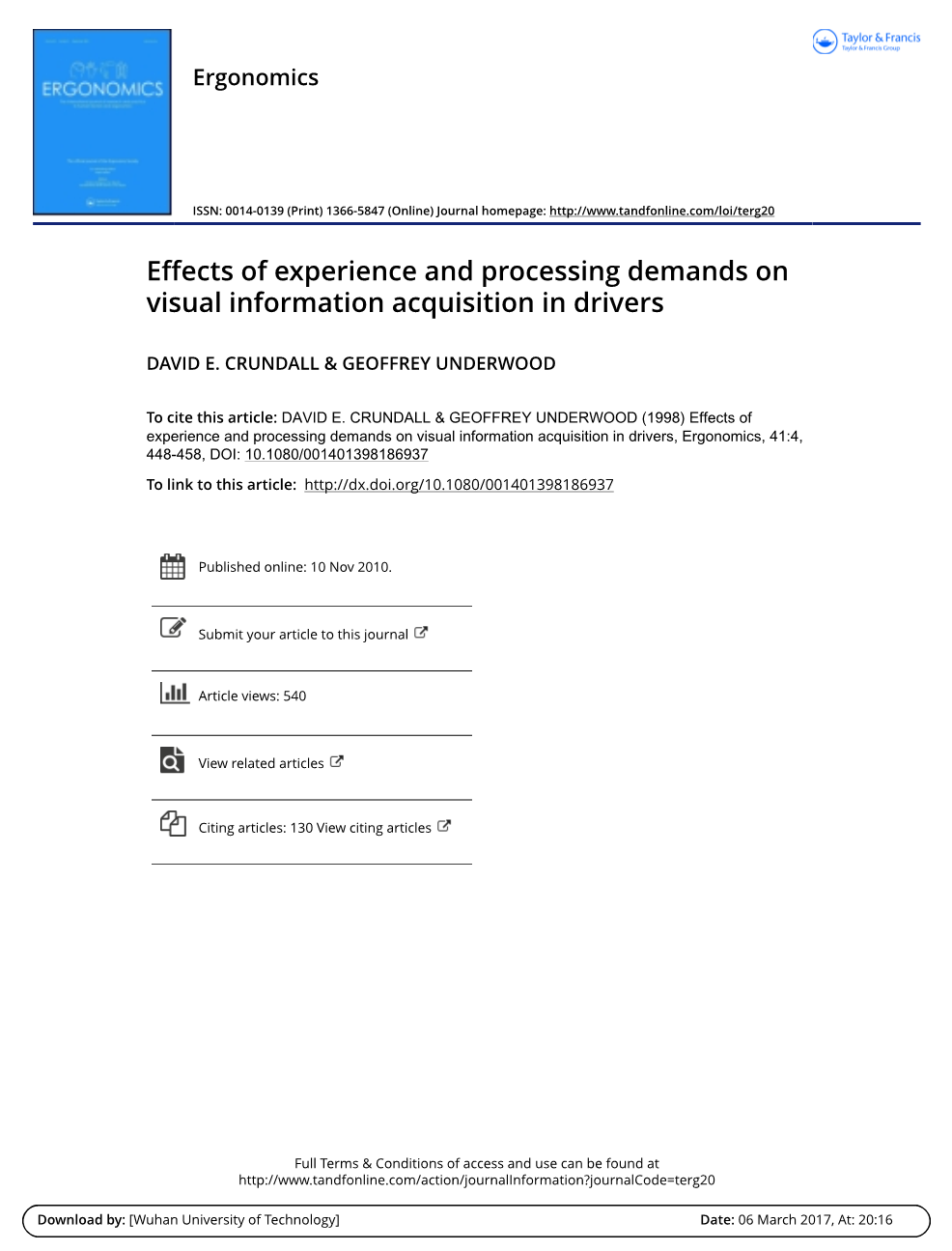 关于新手产生更长时间的倾向,据报道,平均持续时间表示需要对一个人喜欢的物体进行加工的时间(Cohen 1981,Henderson et al。1989,Underwood and Everatt 1992),以及已被发现随着光学阵列的密度相应地增加(Mackworth 1976)或者复杂性的增加(Loftus和Mackworth 1978),因此新手驱动器的平均持续时间的任何增加可以重新获得额外的处理时间他们需要提取他们需要的信息。类似地,在需要额外处理时间来选择相关信息的幼儿中发现了增加的持续时间(Mackworth和Bruner 1970)。如果将追踪追踪视为移动物体的移动(因为观察图像被定义在中心凹上的意义上),这些移动的增加也可以解释新手所需的额外处理时间的间隔由于刺激的新颖性。当受试者看到道路时,他们倾向于在地平线上下降4 8,在7 8部分中有很少的空间,表明后一种信息来源是通过外部视野获得的。如果新手比经验丰富的驾驶员更频繁地使用车道标记,那么在驱动程序中的视觉信息获取方面,Manourant和Rockwell提出建议,如果这样做的原因是为了保持固定,那么这可能表明其外围视力范围有问题:如果它们的周边视线不延伸到车道标记,或者它们不能在外围提取信息,因此车道标记的运动可能是补偿性策略。