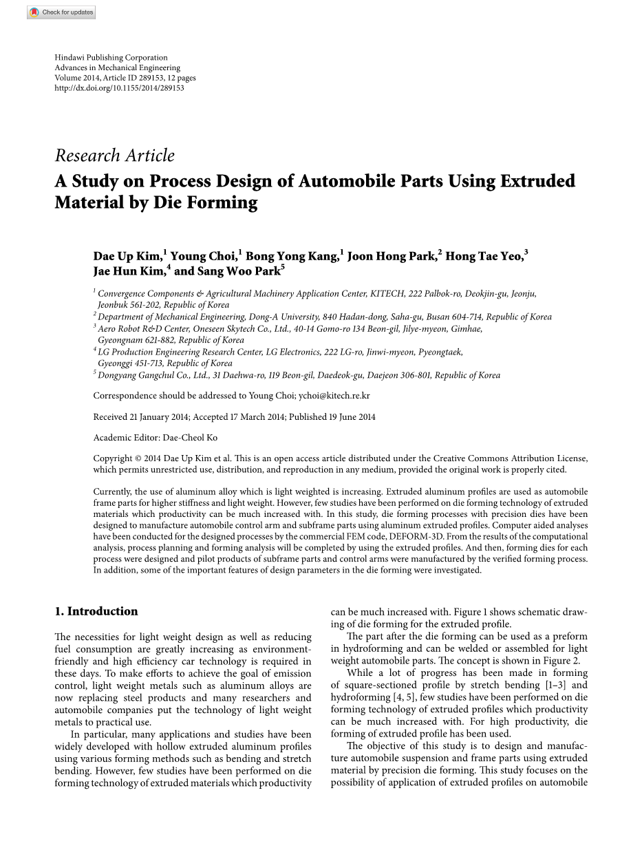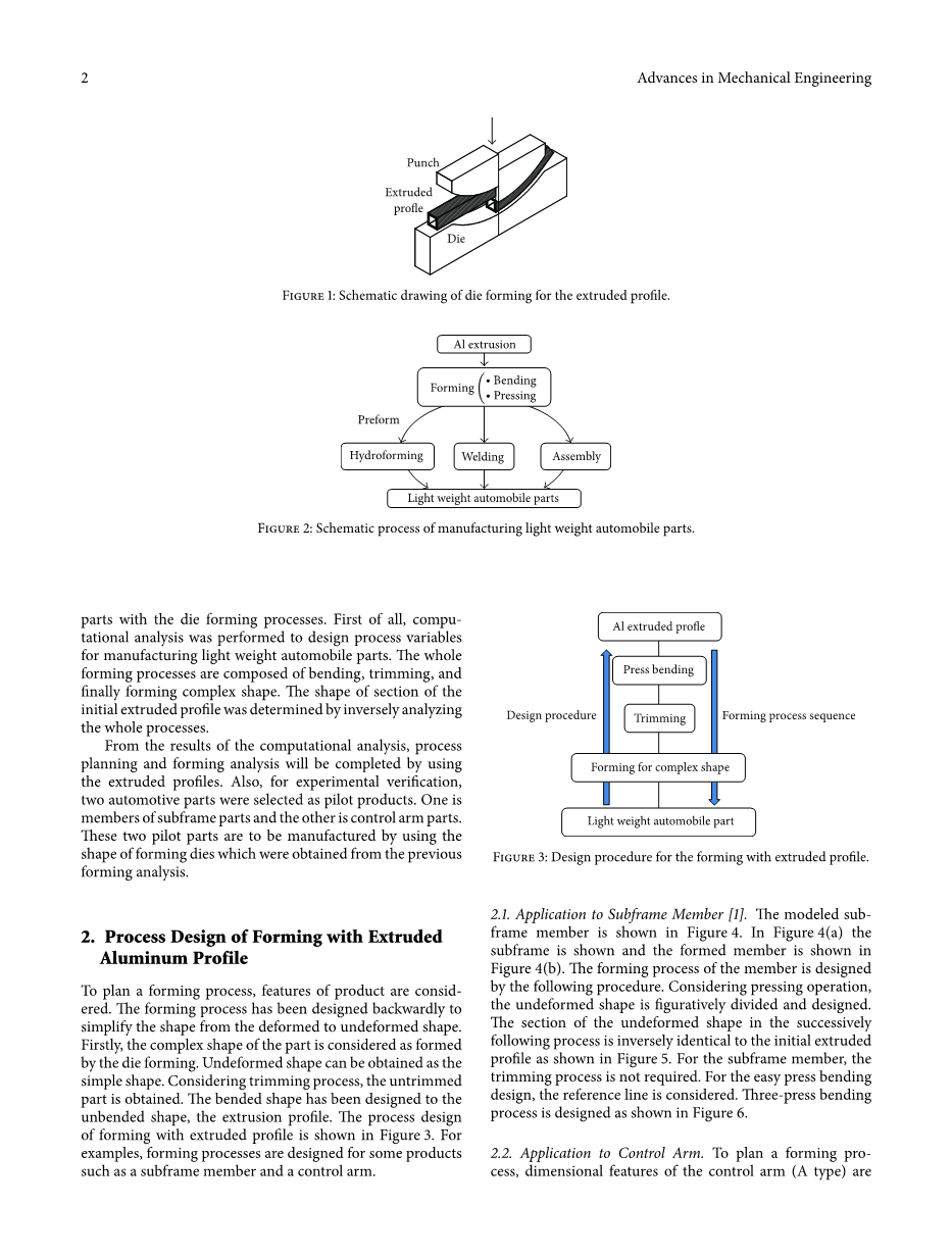 [1] Y. Choi, H. T. Yeo, J. H. Park, G. H. Oh, and S. W. Park, “A study on press forming of automotive sub-frame parts using extruded aluminum profile,” Journal of Materials Processing Technology, vol. 187-188, pp. 85–88, 2007.