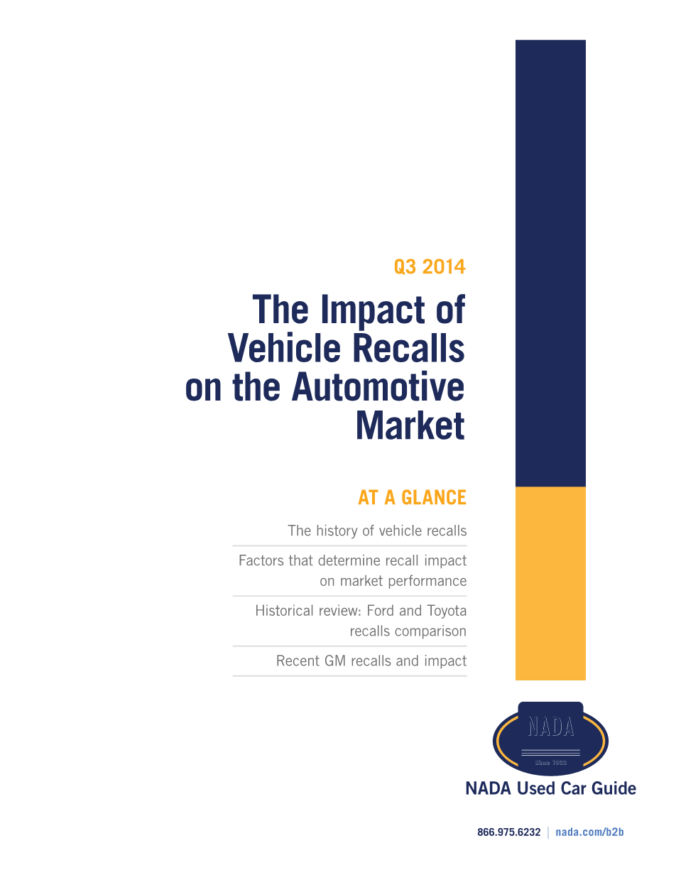 当发生安全缺陷时,汽车制造商必须启动某种形式的召回来解决问题。大多数召回都是简单的日常事务。制造商与其经销商合作伙伴合作,通常是在定期维护访问期间以透明和及时的方式处理问题。由于采取了提前的行动,消费者很方便并且开心地开车离去。因此,召回对新车销售和市场份额或二手车价格产生负面影响是不寻常的。