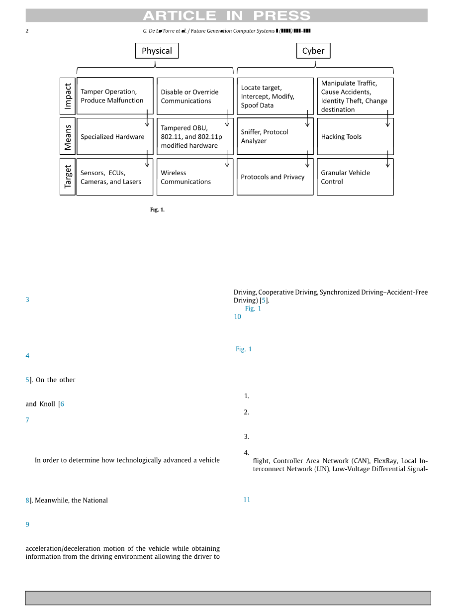 图1中提出的概念是受到Loukas和Patrikakis[10]的启发,他们识别了万物互联的组成部分并分解了其威胁。我们重组,适应这一概念结构的基础上自动驾驶车辆的识别个人安全元素及其相应的威胁(见图1)。此外,我们将这些元素分类为网络和物理组织,我们的兴趣是识别的方法和影响当试图攻击目标车辆。我们还将自动驾驶汽车所配备的不同技术分为以下四类: