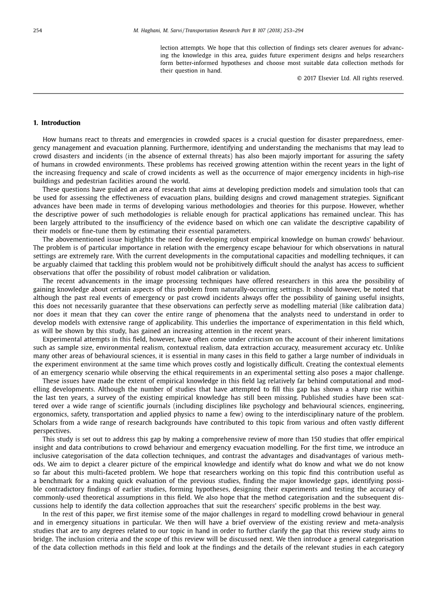 这些问题使得本领域的经验知识的发展程度相对滞后于计算和模型的发展。 尽管试图填补这一差距的研究数量在过去十年中显示出急剧上升,但对现有经验知识的调查仍然缺失。由于问题的跨学科性,已发表的研究分散在各种各样的科学期刊(包括心理学和行为科学、工程学、人体工程学、安全、运输和应用物理学等学科)。来自广泛研究背景的学者从各种不同的角度对这个课题做出了贡献。