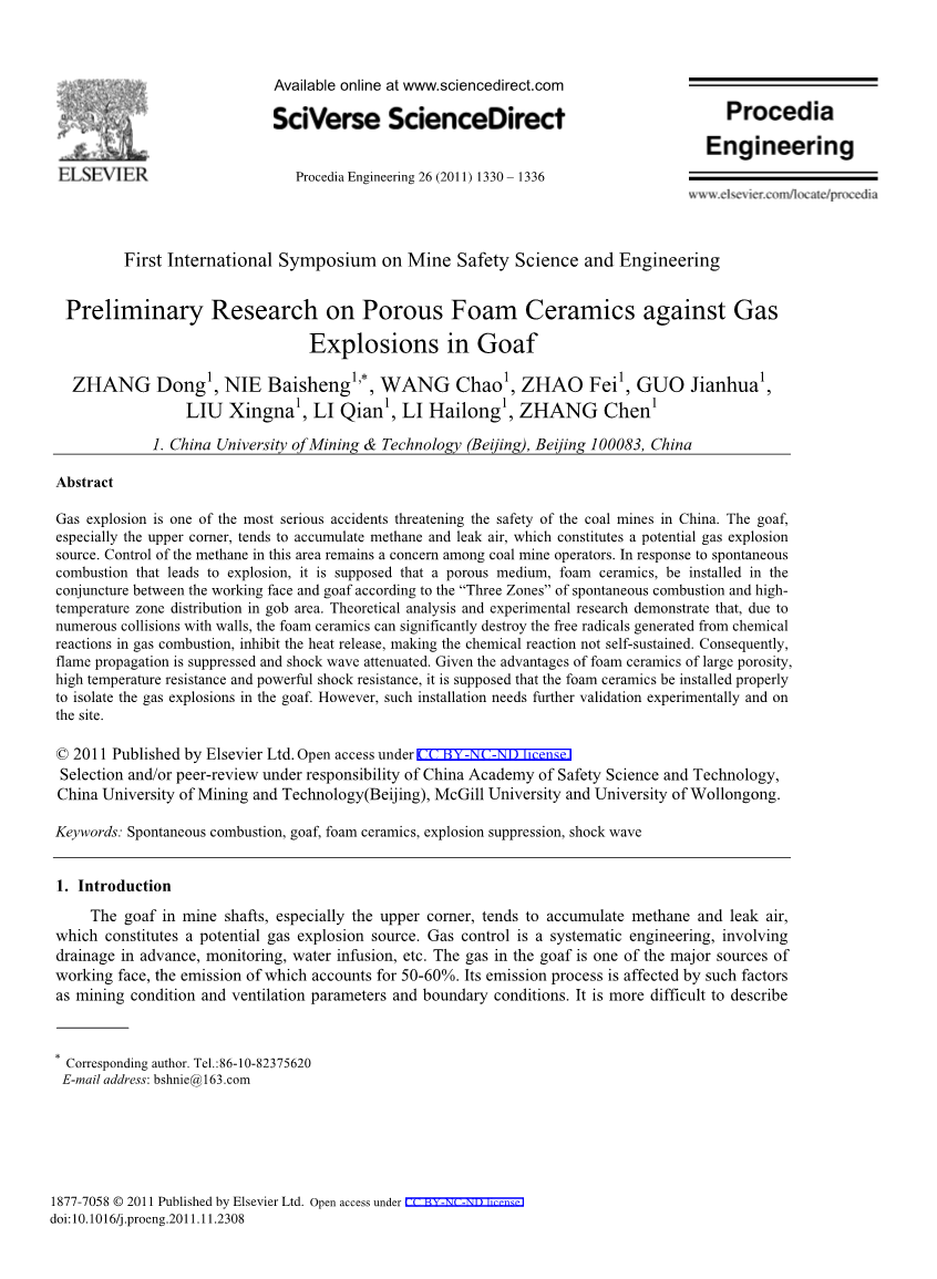 关键词:自燃、采空区、泡沫陶瓷、爆炸抑制、冲击波。
