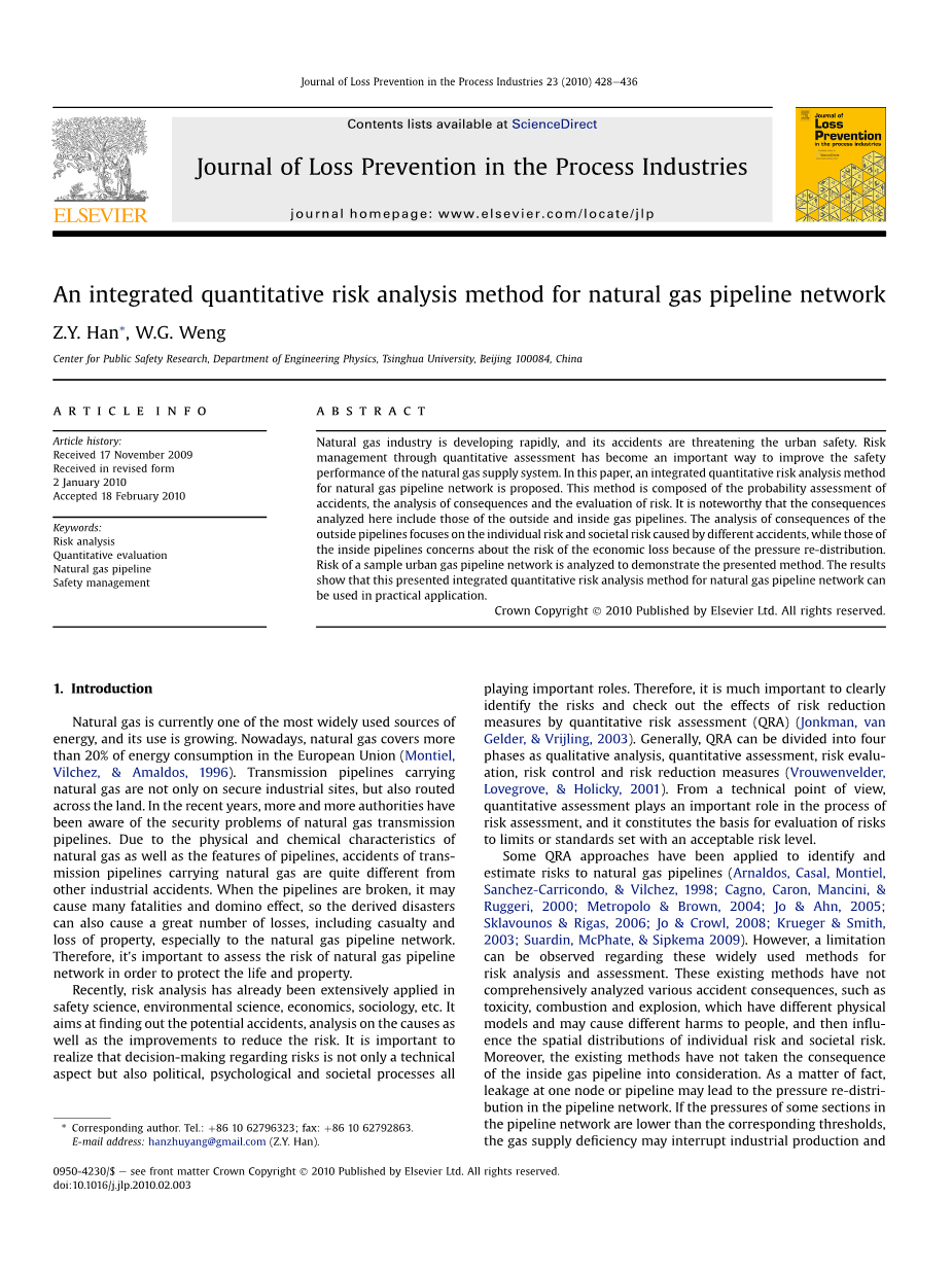 天然气是目前使用最广泛的能源之一,并且其用途仍在不断增加。目前,天然气占欧盟能源消耗的20%以上(Montiel,Vilchez和Amaldos,1996年)。输送天然气的运输管道不仅在安全的工业场所,还在整个陆地上运行。近年来,越来越多的有关部门意识到天然气输送管道的安全问题。由于天然气的物理和化学特性以及管道的特点,运输天然气的输送管道事故与其他工业事故有很大不同。当管道破损时,可能会造成多人死亡和多米诺骨牌效应,所导致的灾害也会造成很多损失,包括人员伤亡和财产损失,特别是天然气管网所导致的灾害。因此,为了保护生命和财产安全,对天然气管网进行风险评估是非常重要的。