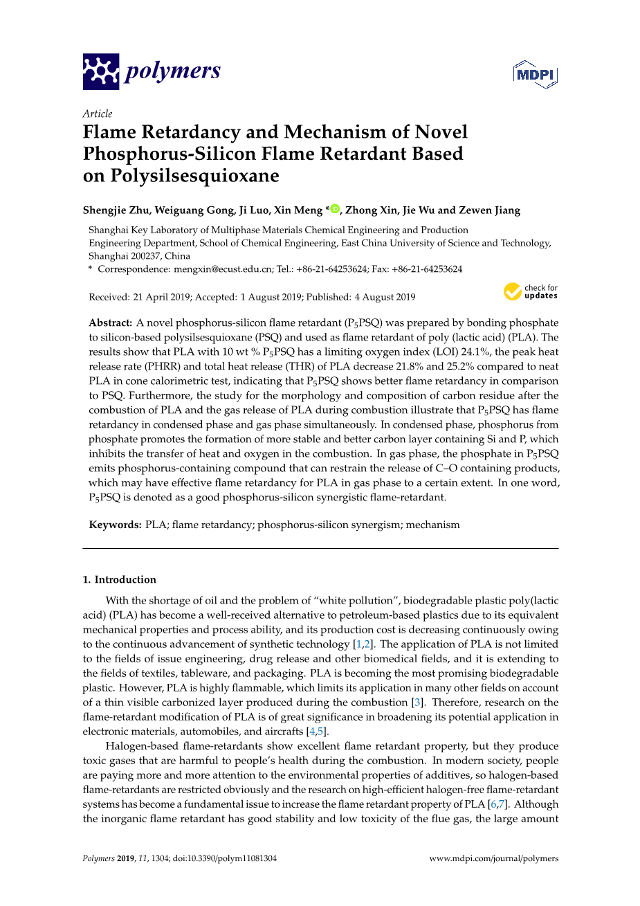 基于聚倍半硅氧烷的新型磷硅阻燃剂的阻燃性及机理外文翻译资料