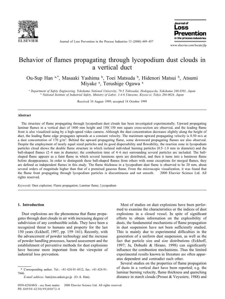 O.-S. Han et al. / Journal of Loss Prevention in the Process Industries 13 (2000) 449-457
